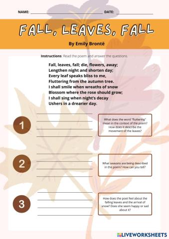 • English as a Second Language (ESL) Fall Worksheet - Reading Comprehension of a Poem English Level K5