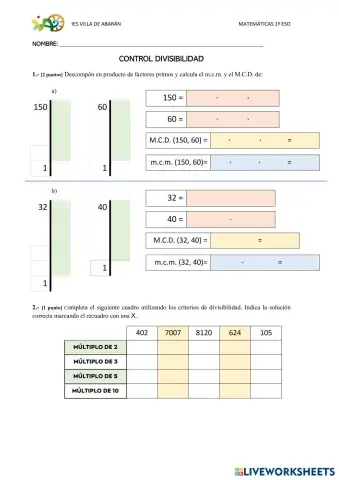 CONTROL DIVISIBILIDAD 1ª PARTE