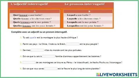 Les adjectifs et pronoms interrogatifs