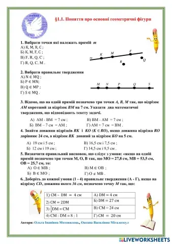 • математика Застосування понять про елементарні геометричні фігури та їх властивості Ukrainian Level 7