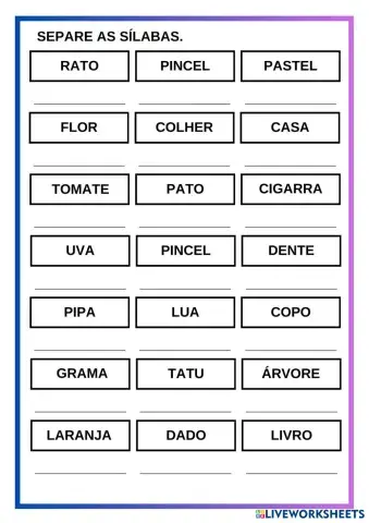 SEPARE AS SÍLABAS