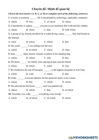 Chuyên đề: Mệnh đề quan hệ