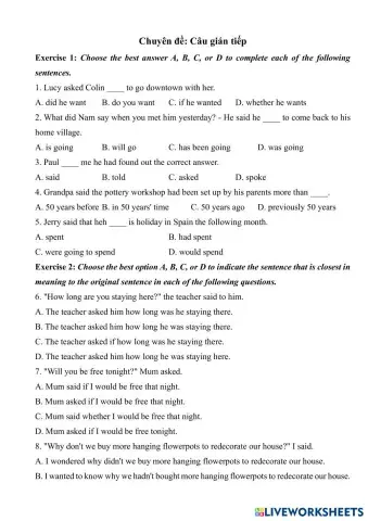 Chuyên đề: Câu gián tiếp