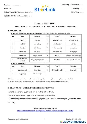• English as a Second Language (ESL) Online_Foreign Teacher_S2_W27_U8_VOCABULARY 1 & MOVERS LISTENING Vietnamese Level S2