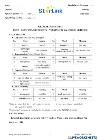 • English as a Second Language (ESL) Online_Foreign Teacher_S2_W29_U9_VOCABULARY 1 & MOVERS LISTENING Vietnamese Level S2