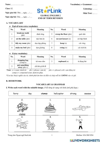 • English as second language Online_Foreign Teacher_S2_TET HOLIDAY_U5_VOCABULARY REVISION Vietnamese Level S2