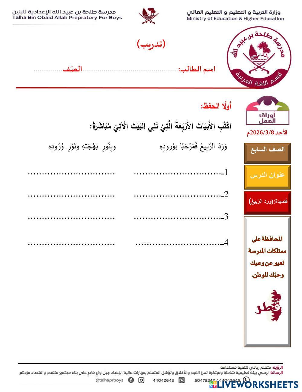 تدريب للطلاب على حفظ القصيدة