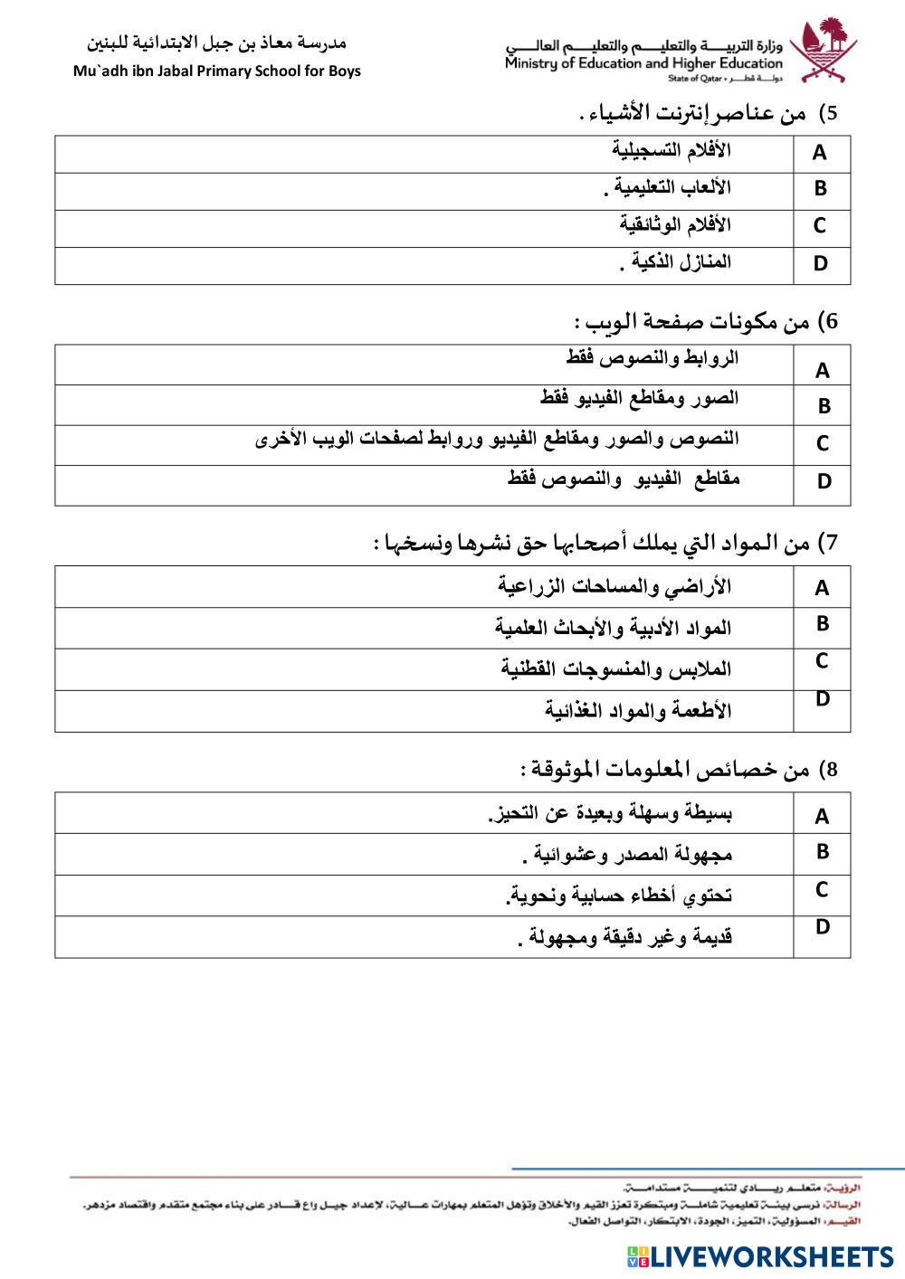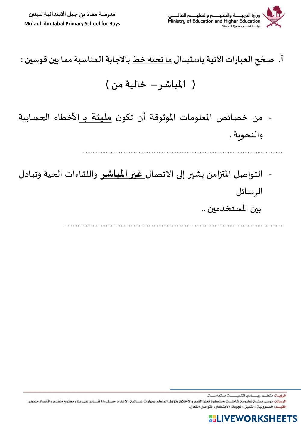 Created byAlaa Mohamed Ahmed Ali ESL Arabic A1 (เริ่มต้น) ไวยากรณ์ Arabic คำแนะนำของผู้เขียน مراجعة على المفاهيم النظرية-منتصف ف2-سادس2026 My Google Classroom Courses × 0 classes selected (0 students total) Quick Access Select all classes (0 classes) All Classes Loading courses... ยกเลิก Share Share to selected Course __COURSE_NAME__ __STUDENT_NAME__ (__STUDENT_EMAIL__) مراجعة على المفاهيم النظرية-منتصف ف2-سادس2026 ดาวน์โหลด Worksheet Validation Check my answers Emails my answers to my teacher ชื่อเต็ม Group/level School subject Teacher's email or key code Close ส่งข้อมูล Validating worksheet... (12) Your answers have been sent to your teacher. Good luck! OK We encountered an error submitting your answers. Please try again. OK โฆษณา | ใช้งานแบบไม่มีโฆษณา Created byAlaa Mohamed Ahmed Ali ESL Arabic A1 (เริ่มต้น) ไวยากรณ์ Arabic คำแนะนำของผู้เขียน مراجعة على المفاهيم النظرية-منتصف ف2-سادس2026 สำรวจแผ่นงาน حرف اللام ESL A1 حرف اللام Grammar - ESL ابحث عن الكلمات التي تحتوي حرف لام נטיית הפועל בעבר ESL A1 נטיית הפועל בעבר Grammar - ESL פעלו בהתאם להוראות حروف الجر ESL A1 حروف الجر Grammar - ESL وصل الصورة مع الجملة الصحيحة حروف الجر ESL A1 حروف الجر Grammar - ESL وصل الصورة مع الجملة الصحيحة