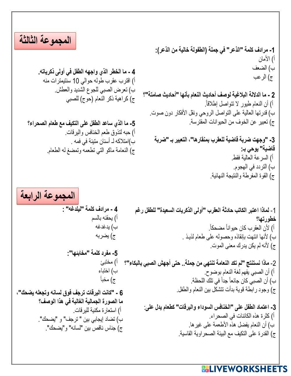 Created byehab mohamed kamal ESL Arabic C2 (ความเชี่ยวชาญ) การเขียน Arabic คำแนะนำของผู้เขียน الولد الذي عاش مع النعام My Google Classroom Courses × 0 classes selected (0 students total) Quick Access Select all classes (0 classes) All Classes Loading courses... ยกเลิก Share Share to selected Course __COURSE_NAME__ __STUDENT_NAME__ (__STUDENT_EMAIL__) 2الولد الذي عاش مع النعام ( مدفون في الرمال) ดาวน์โหลด Worksheet Validation Check my answers Emails my answers to my teacher ชื่อเต็ม Group/level School subject Teacher's email or key code Close ส่งข้อมูล Validating worksheet... (12) Your answers have been sent to your teacher. Good luck! OK We encountered an error submitting your answers. Please try again. OK โฆษณา | ใช้งานแบบไม่มีโฆษณา Created byehab mohamed kamal ESL Arabic C2 (ความเชี่ยวชาญ) การเขียน Arabic คำแนะนำของผู้เขียน الولد الذي عاش مع النعام สำรวจแผ่นงาน الممنوع من الصرف ESL C2 الممنوع من الصرف Writing - ESL الممنوع من الصرف التركيب الإضافي ESL C2 التركيب الإضافي Writing - ESL التركيب الإضافي مهارة عدو الحواجز ESL C2 مهارة عدو الحواجز Writing - ESL عزيزتي الطالبة بعد دراستك لمهارة عدو الحواجز اجيبي على الاسئلة التالية تقييم الهدف الثاني - درس النبي المعلم ESL C2 تقييم الهدف الثاني - درس النبي المعلم Writing - ESL تعليمات حل تقييم الهدف إغلاق الكتاب الدراسي تدوين الإجابة في ورقة العمل أدناه نوع التقييم: فردي آلية التصويب: تلقائية زمن التقييم: خمس دقائق