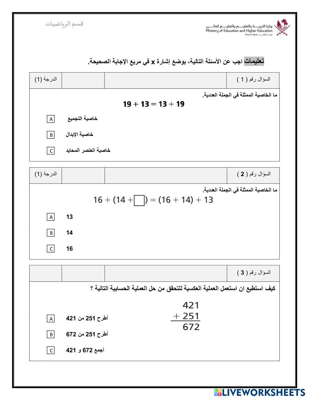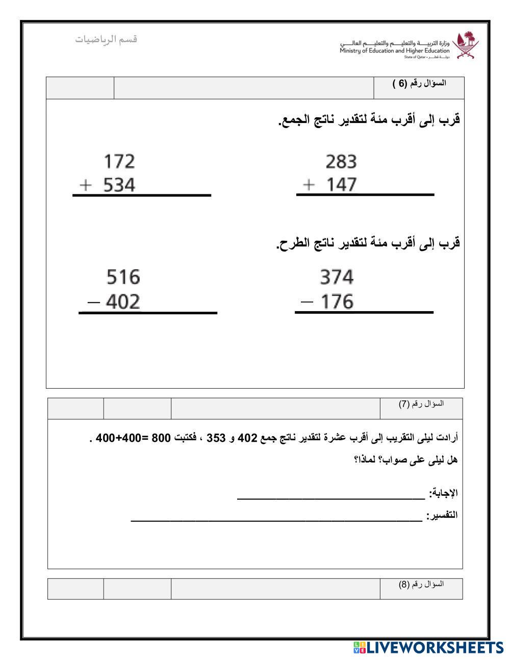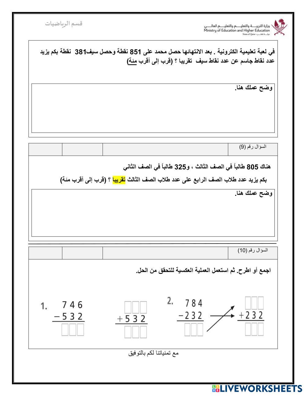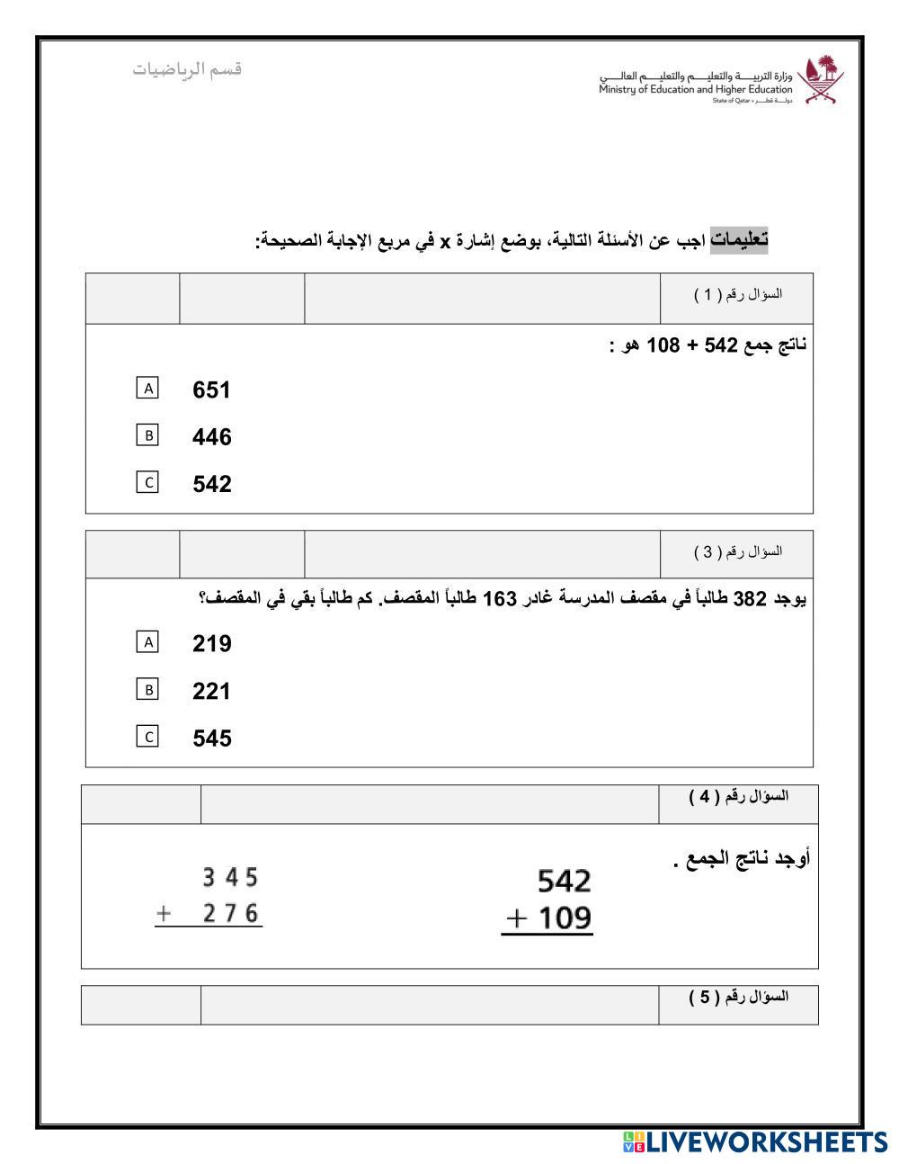 Created bydesouki คณิตศาสตร์ ประถมศึกษา ป.3 (ประถมศึกษาปีที่ 3) การบวกและการลบ Arabic คำแนะนำของผู้เขียน قم بحل الأسئلة التالية My Google Classroom Courses × 0 classes selected (0 students total) Quick Access Select all classes (0 classes) All Classes Loading courses... ยกเลิก Share Share to selected Course __COURSE_NAME__ __STUDENT_NAME__ (__STUDENT_EMAIL__) تدريبات اثرائية للصف الثالث رياضيات ดาวน์โหลด Worksheet Validation Check my answers Emails my answers to my teacher ชื่อเต็ม Group/level School subject Teacher's email or key code Close ส่งข้อมูล Validating worksheet... (12) Your answers have been sent to your teacher. Good luck! OK We encountered an error submitting your answers. Please try again. OK โฆษณา | ใช้งานแบบไม่มีโฆษณา Created bydesouki คณิตศาสตร์ ประถมศึกษา ป.3 (ประถมศึกษาปีที่ 3) การบวกและการลบ Arabic คำแนะนำของผู้เขียน قم بحل الأسئلة التالية สำรวจแผ่นงาน Sumas y restas con llevadas Math 3rd grade Sumas y restas con llevadas Addition and Subtraction - Math sumas y restas con llevadda ordenar númetos munca independenta Math 3rd grade munca independenta Addition and Subtraction - Math Rezolvati التقريب للصف الثالث Math 3rd grade التقريب للصف الثالث Addition and Subtraction - Math بطاقة عمل Compra en el mercado Math 3rd grade Compra en el mercado Addition and Subtraction - Math Suma multiplicación y resta