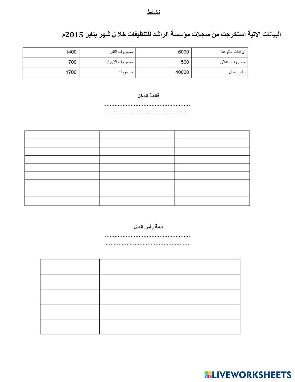 Created by hayatali1 คณิตศาสตร์ มัธยมศึกษาตอนปลาย ม.4 (มัธยมศึกษาปีที่ 4) แคลคูลัสและแนวคิดคณิตศาสตร์ขั้นสูง Arabic คำแนะนำของผู้เขียน معادلة قائمة الدخل = الايرادات - المصروفات My Google Classroom Courses × 0 classes selected (0 students total) Quick Access Select all classes (0 classes) All Classes Loading courses... ยกเลิก Share Share to selected Course __COURSE_NAME__ __STUDENT_NAME__ (__STUDENT_EMAIL__) قائمة رأس المال ดาวน์โหลด Worksheet Validation Check my answers Emails my answers to my teacher ชื่อเต็ม Group/level School subject Teacher's email or key code Close ส่งข้อมูล Validating worksheet... (12) Your answers have been sent to your teacher. Good luck! OK We encountered an error submitting your answers. Please try again. OK โฆษณา | ใช้งานแบบไม่มีโฆษณา Created by hayatali1 คณิตศาสตร์ มัธยมศึกษาตอนปลาย ม.4 (มัธยมศึกษาปีที่ 4) แคลคูลัสและแนวคิดคณิตศาสตร์ขั้นสูง Arabic คำแนะนำของผู้เขียน معادلة قائمة الدخل = الايرادات - المصروفات สำรวจแผ่นงาน Bài 28. PHẠM VI CỦA BIẾN Math 10th grade Bài 28. PHẠM VI CỦA BIẾN Calculus and Advanced Math Concepts - Math TIN HỌC 10 FF1 Review housethings final Math 10th grade FF1 Review housethings final Calculus and Advanced Math Concepts - Math no instrutio Основні поняття електричних кіл Math 10th grade Основні поняття електричних кіл Calculus and Advanced Math Concepts - Math Тестові завдання الخرائط التدفقية Math 10th grade الخرائط التدفقية Calculus and Advanced Math Concepts - Math استخدم خاصية السحب والإفلات لملء الخريطة التدفقية أدناه بما يناسب من العبارات