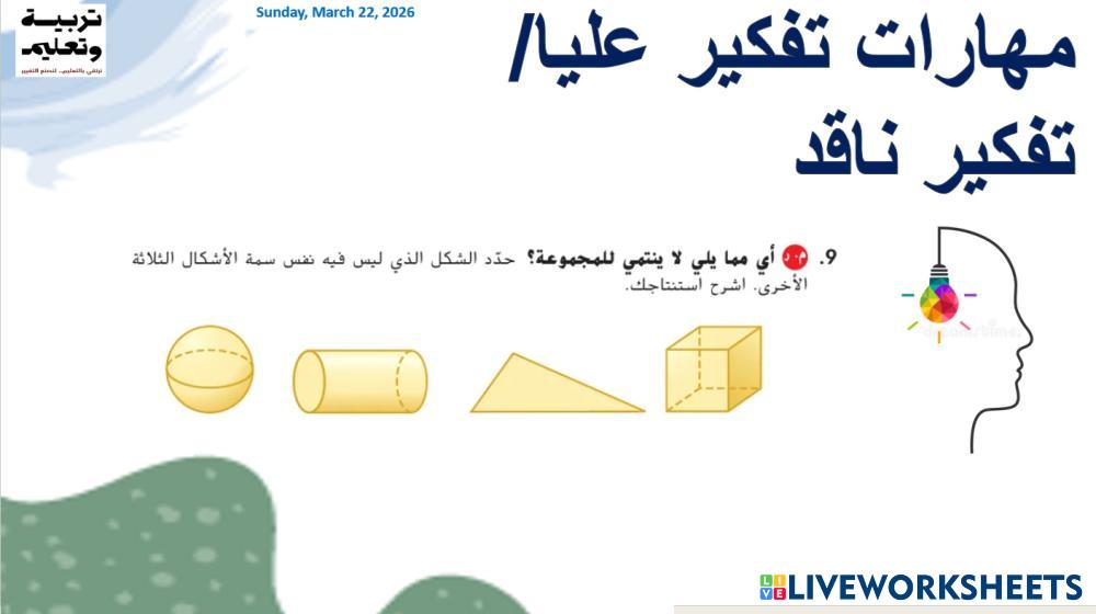 Created by umahmed1 คณิตศาสตร์ มัธยมศึกษาตอนต้น ม.1 (มัธยมศึกษาปีที่ 1) เรขาคณิต Arabic คำแนะนำของผู้เขียน مناظير My Google Classroom Courses × 0 classes selected (0 students total) Quick Access Select all classes (0 classes) All Classes Loading courses... ยกเลิก Share Share to selected Course __COURSE_NAME__ __STUDENT_NAME__ (__STUDENT_EMAIL__) مهارات الدرس الخامس الوحدة 7 ดาวน์โหลด Worksheet Validation Check my answers Emails my answers to my teacher ชื่อเต็ม Group/level School subject Teacher's email or key code Close ส่งข้อมูล Validating worksheet... (12) Your answers have been sent to your teacher. Good luck! OK We encountered an error submitting your answers. Please try again. OK โฆษณา | ใช้งานแบบไม่มีโฆษณา Created by umahmed1 คณิตศาสตร์ มัธยมศึกษาตอนต้น ม.1 (มัธยมศึกษาปีที่ 1) เรขาคณิต Arabic คำแนะนำของผู้เขียน مناظير สำรวจแผ่นงาน TEST Math 7th grade TEST Geometry - Math Aizpildi doto darbalapu! مهارات تفكير عليا لرسم الاشكال ثلاثية الابعاد Math 7th grade مهارات تفكير عليا لرسم الاشكال ثلاثية الابعاد Geometry - Math مناظير Toán 7 Math 7th grade Toán 7 Geometry - Math Toán 7 مساحة متوازي الاضلاع Math 7th grade مساحة متوازي الاضلاع Geometry - Math مساحة متوازي الأضلاع