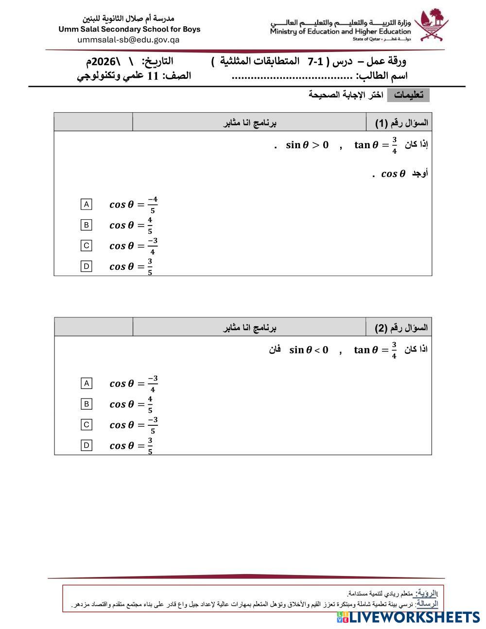 هذه الورقة تراعي الطلاب المتوسط وفوق المتوسط