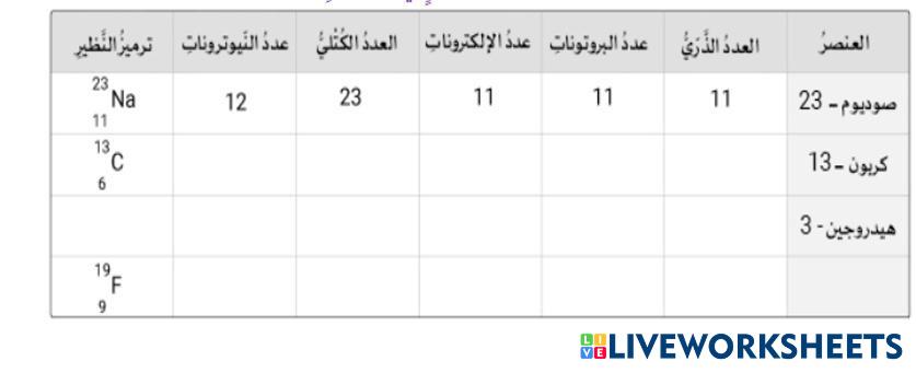 حساب العدد الذري والكتلي وعدد البروتونات والالكترونات