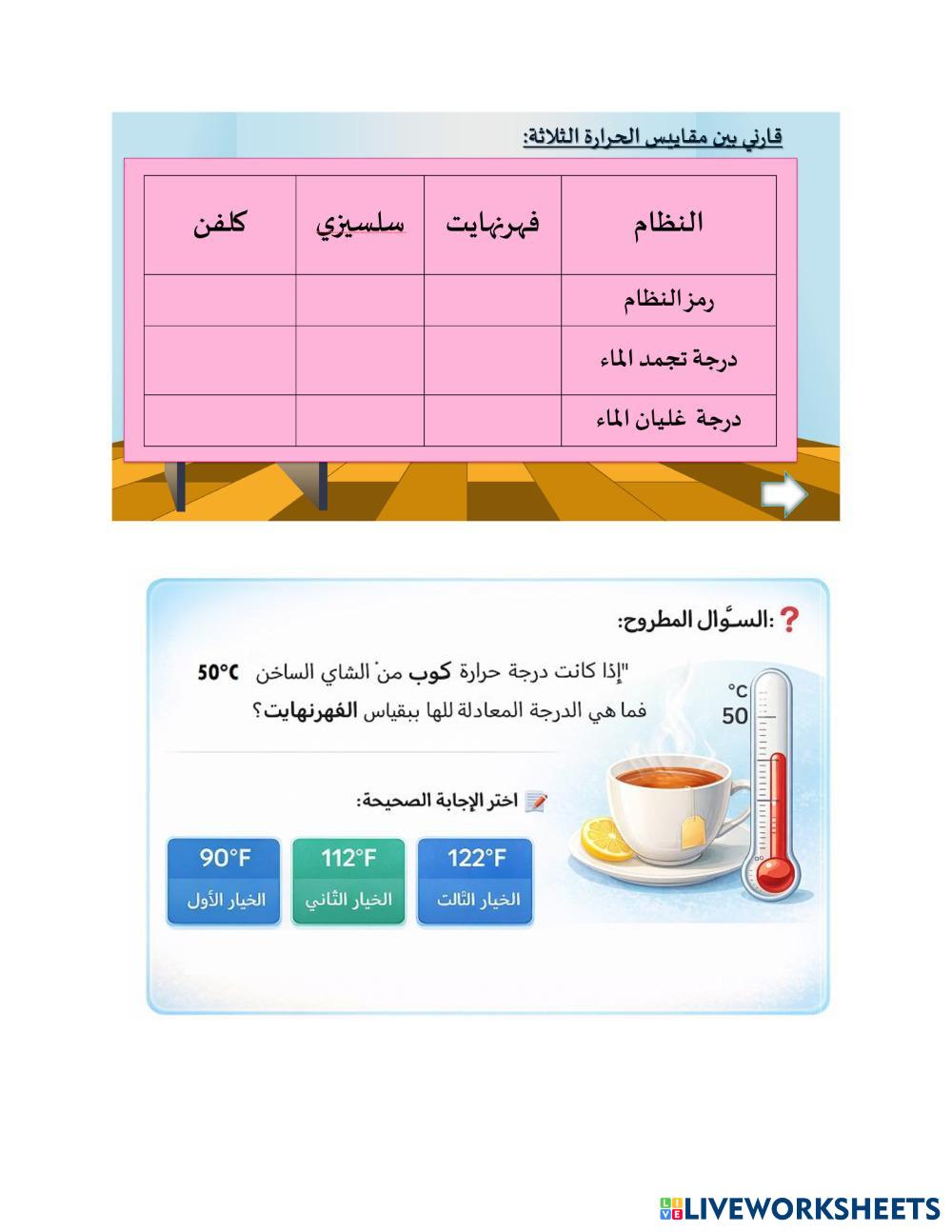 اكمل جدول المقارنة بين انظمة قياس درجة الحرارة