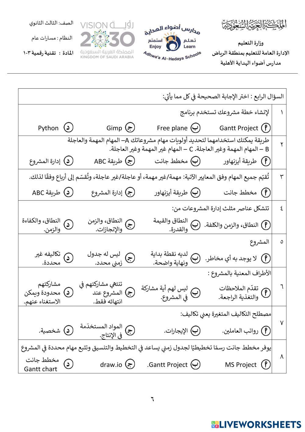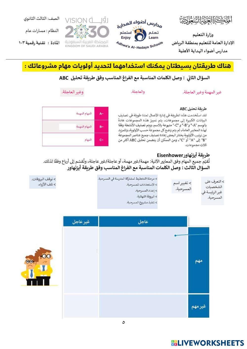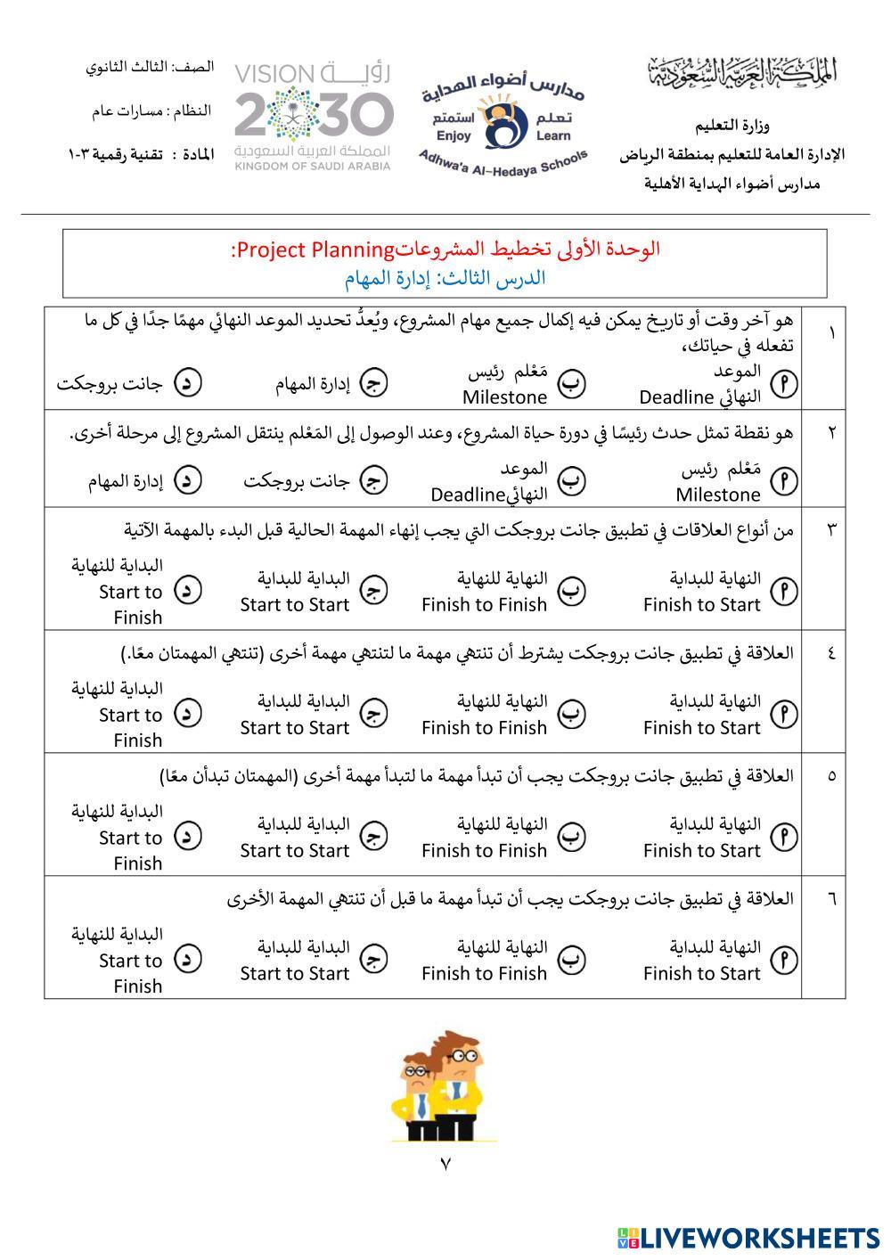 تقنية رقمية 3-1 الوحدة الأولى تخطيط المشروعات 3ث ف 1