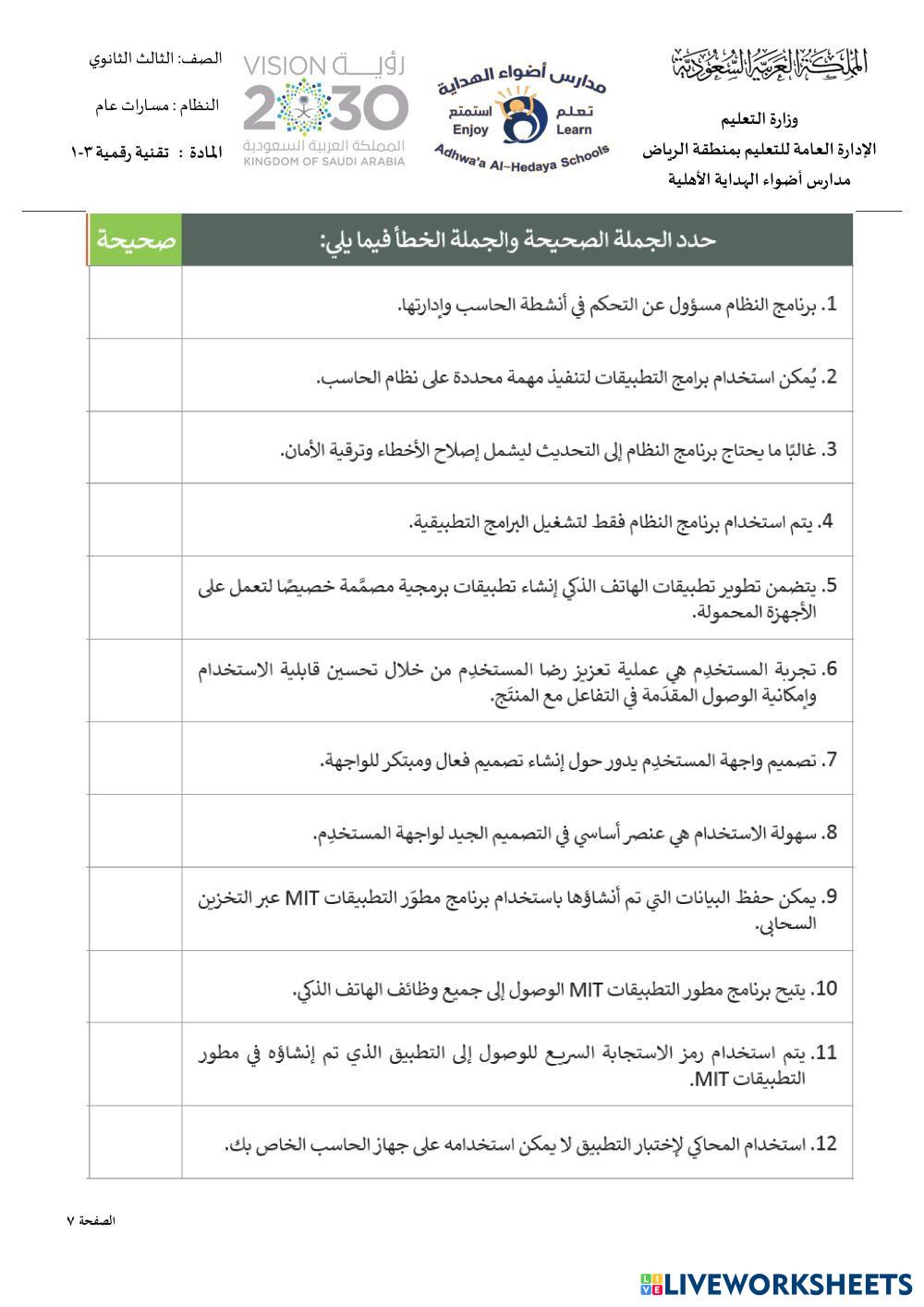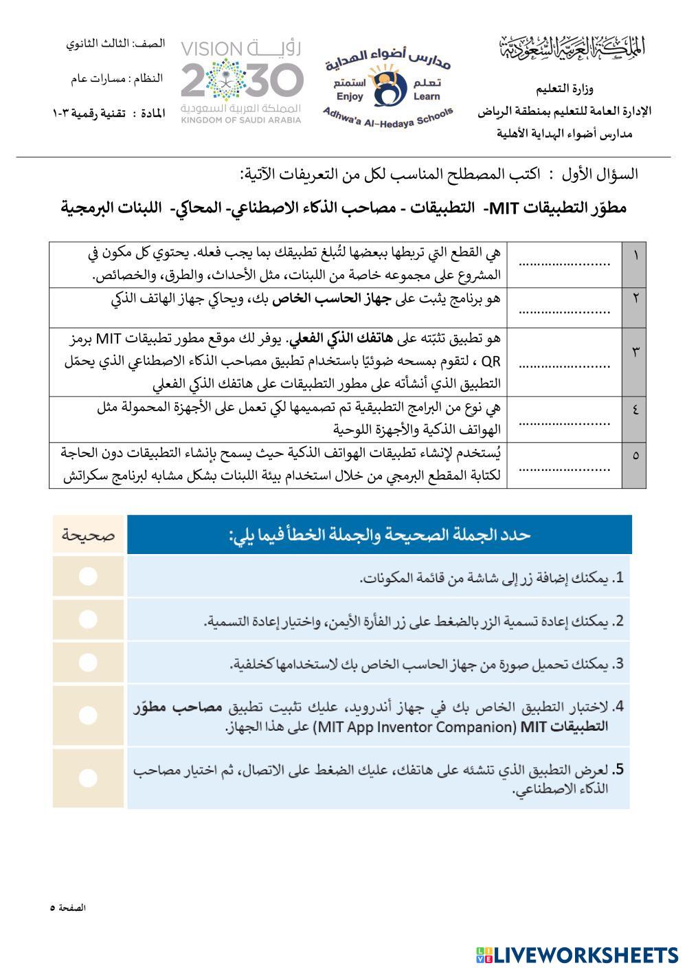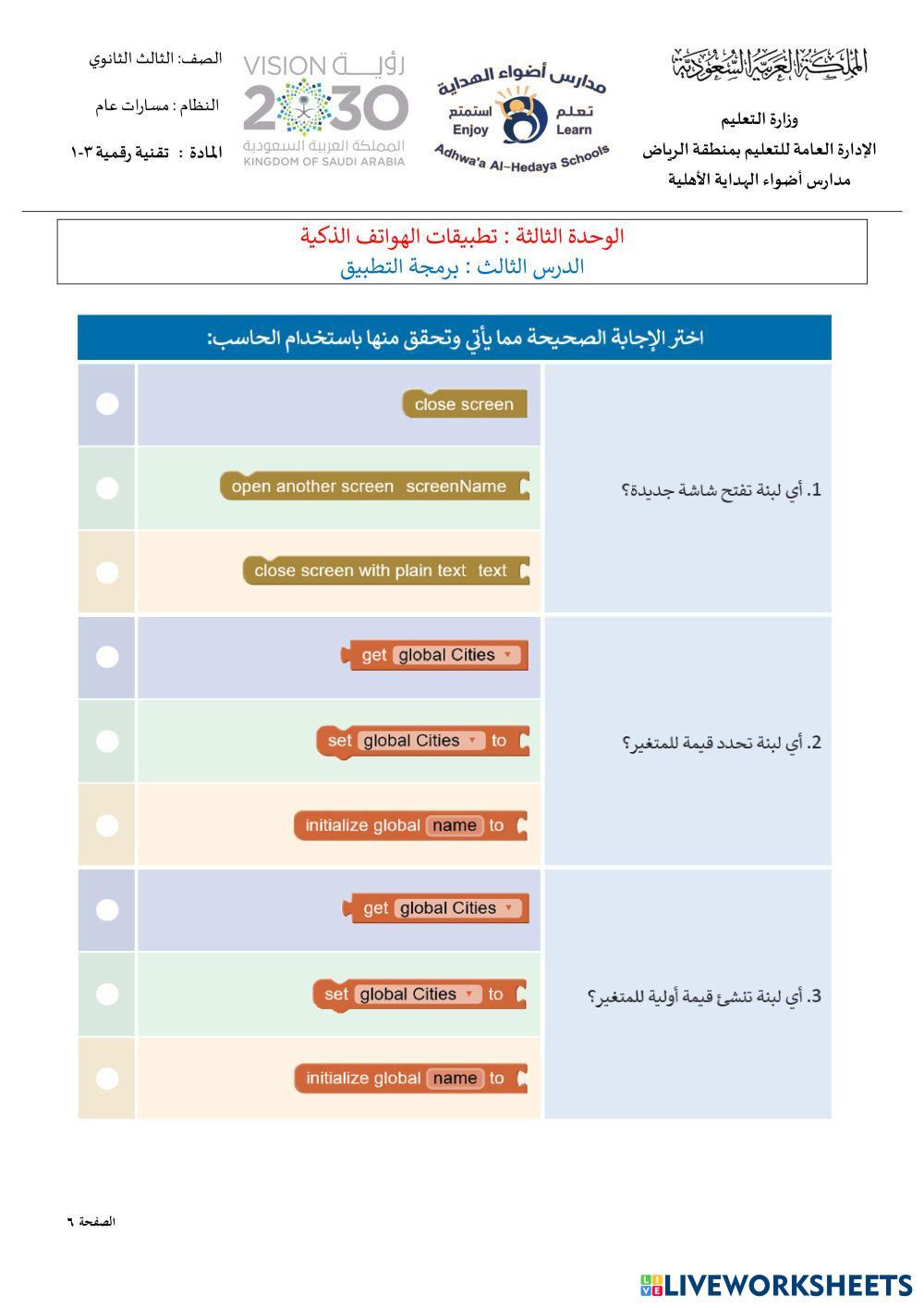 تقنية رقمية 3 ث ف 1 الوحدة الثالثة تطبيقات الهواتف الذكية