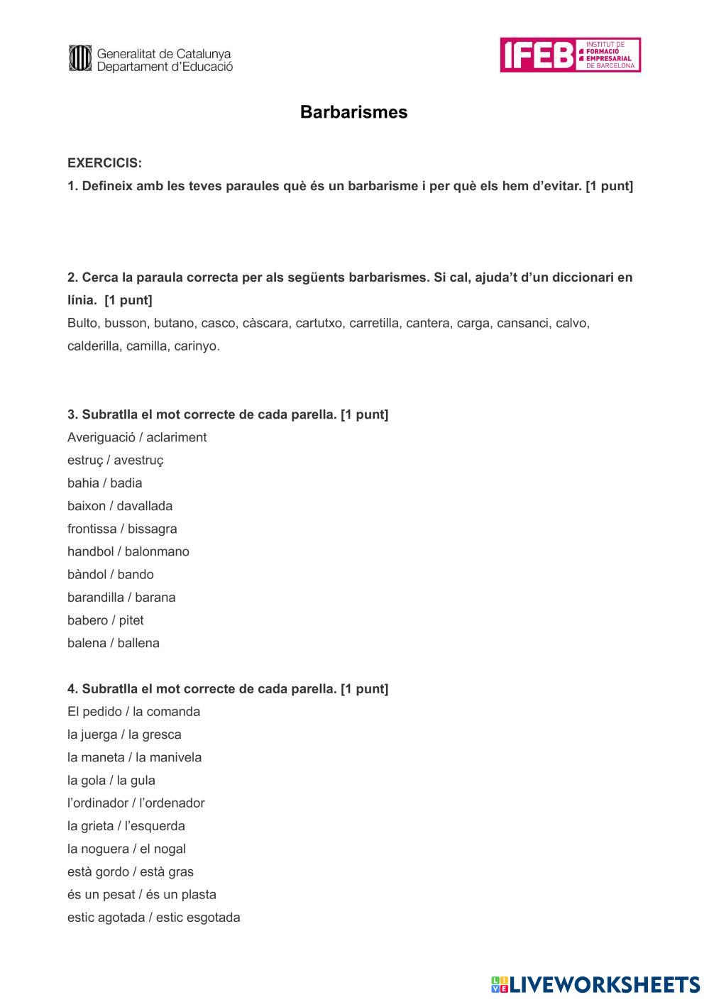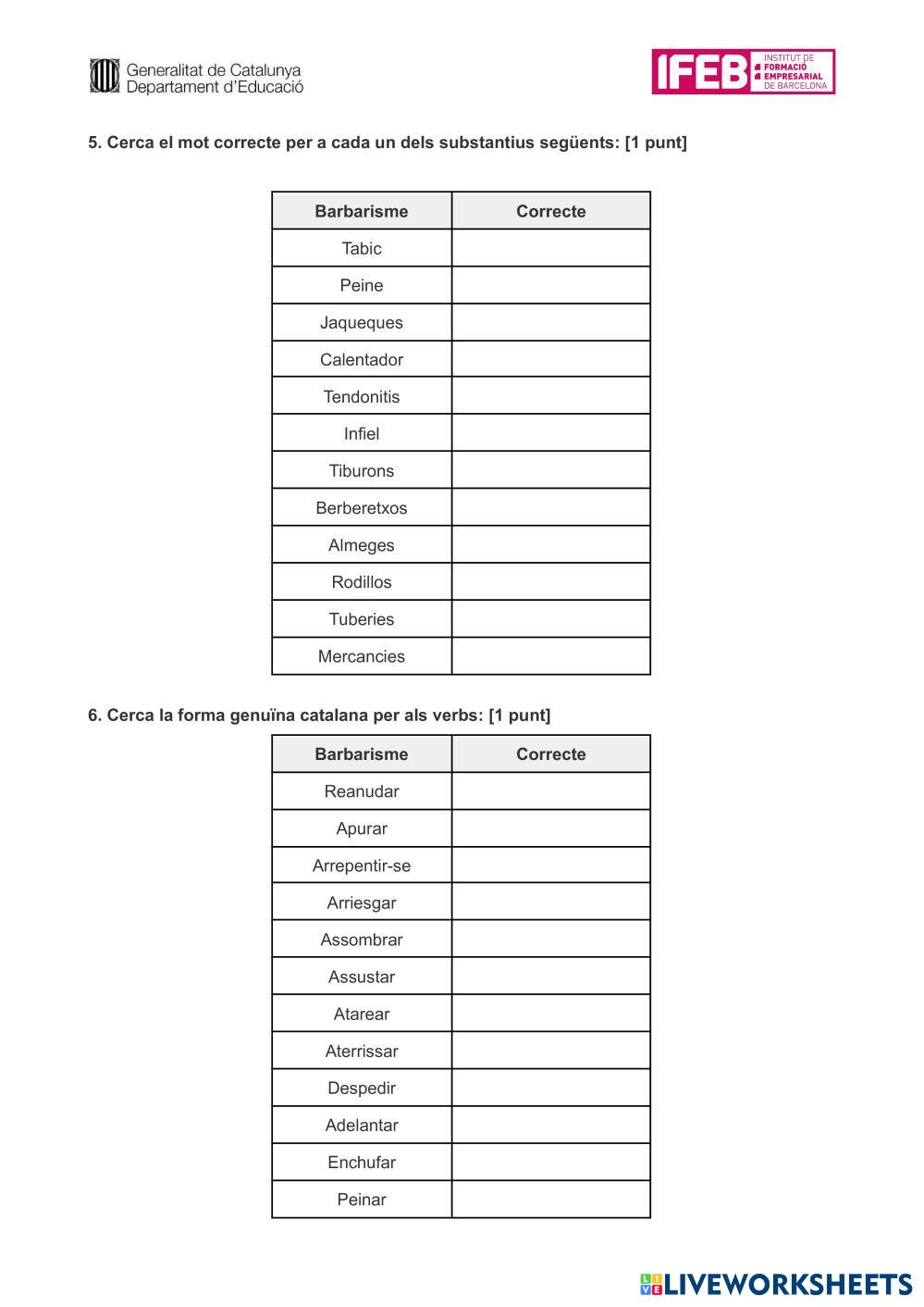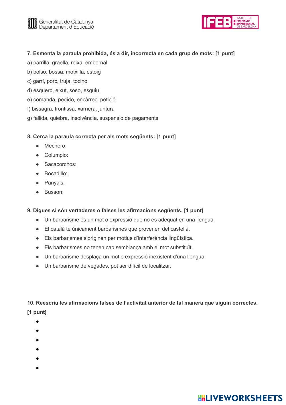 Created by solivar1 Català professional BARBARISMES Age 11+ level: CFGM Catalan คำแนะนำของผู้เขียน My Google Classroom Courses × 0 classes selected (0 students total) Quick Access Select all classes (0 classes) All Classes Loading courses... ยกเลิก Share Share to selected Course __COURSE_NAME__ __STUDENT_NAME__ (__STUDENT_EMAIL__) Barbarismes ดาวน์โหลด Worksheet Validation Check my answers Emails my answers to my teacher ชื่อเต็ม Group/level School subject Teacher's email or key code Close ส่งข้อมูล Validating worksheet... (12) Your answers have been sent to your teacher. Good luck! OK We encountered an error submitting your answers. Please try again. OK โฆษณา | ใช้งานแบบไม่มีโฆษณา Created by solivar1 Català professional BARBARISMES Age 11+ level: CFGM Catalan คำแนะนำของผู้เขียน