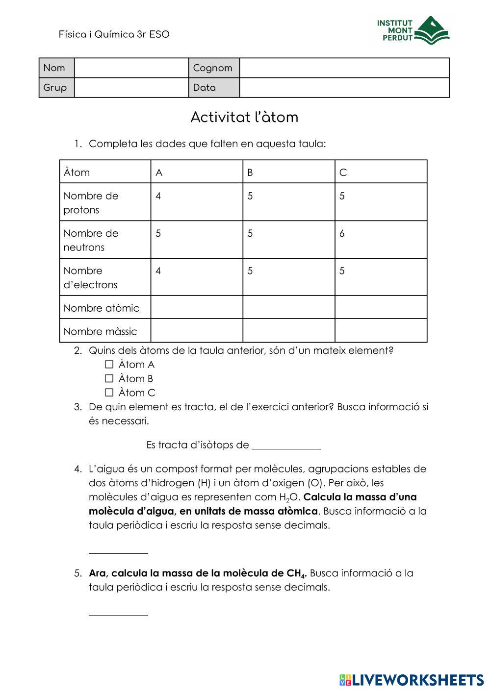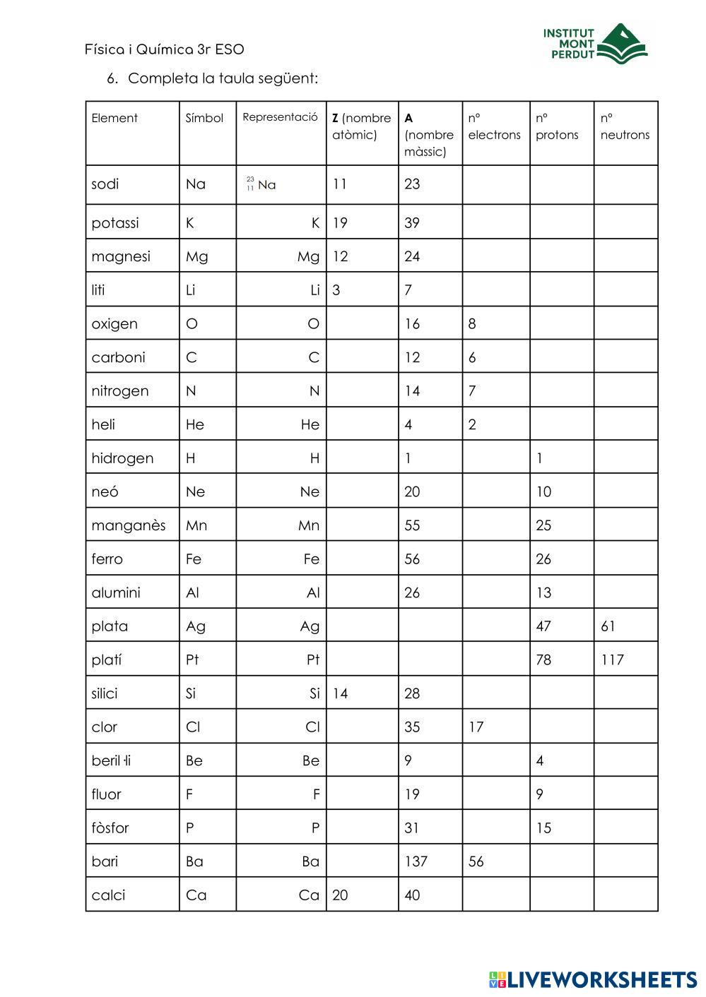 Omple els buits. Es tindran en compte les majúscules i minúscules.