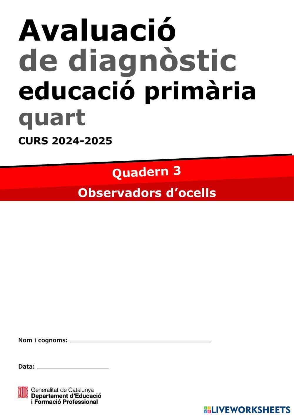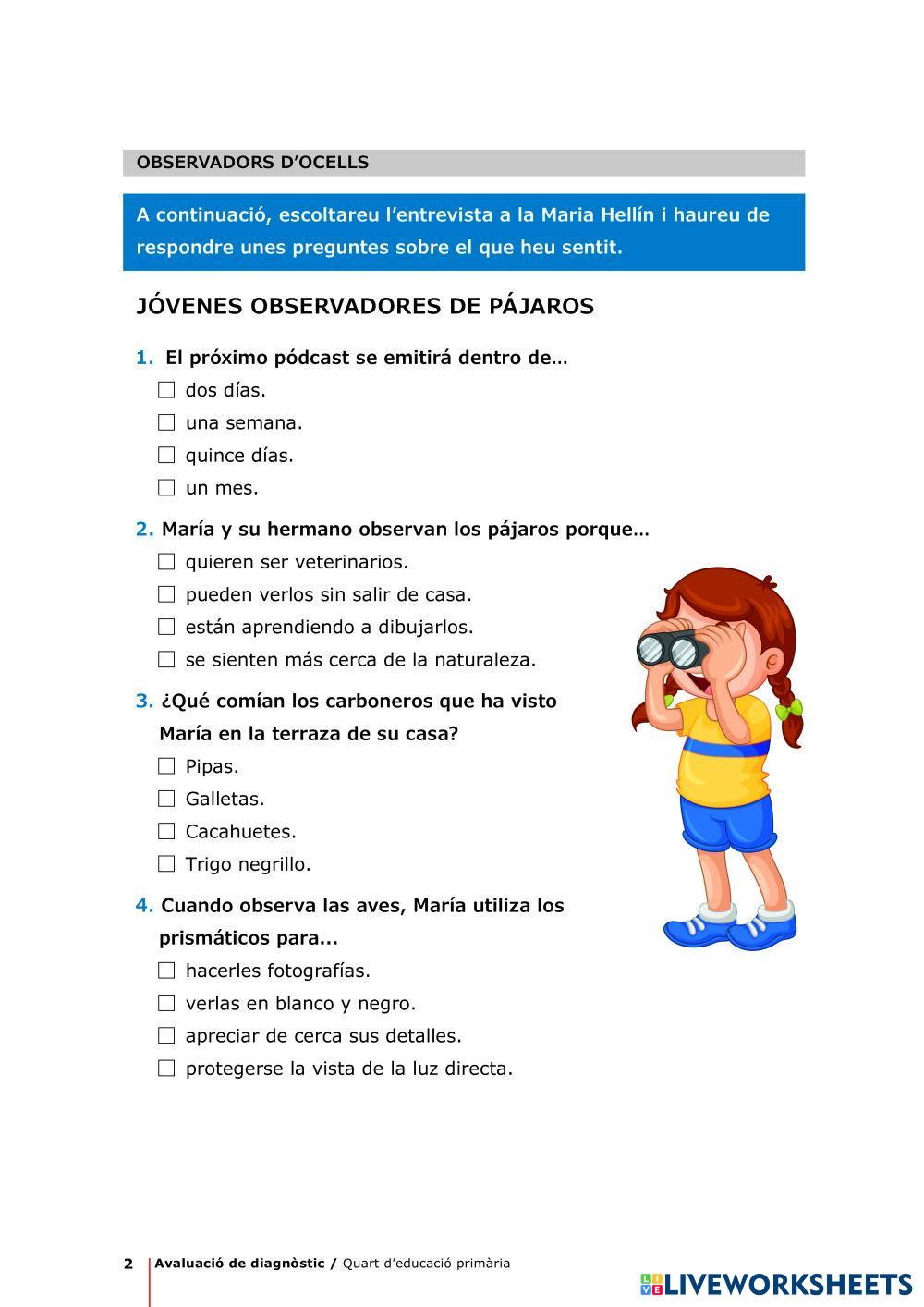 Aquí teniu el 3r quadern del curs 2425. En aquest tenim una activitat de comprensió oral de llengua castellana.