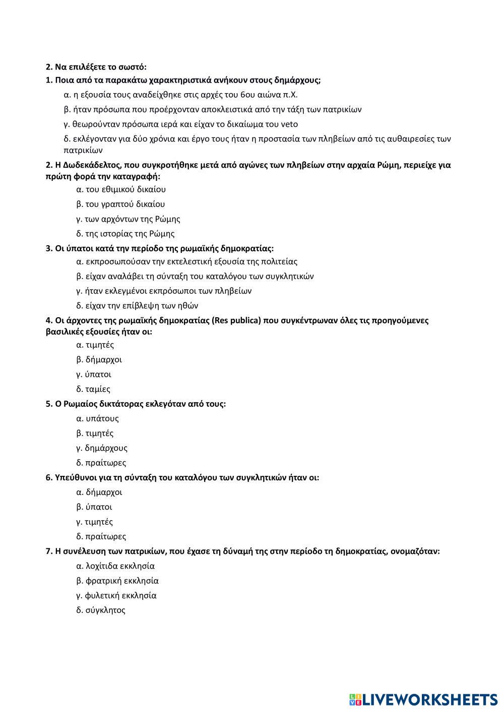 Ασκήσεις κλειστού τύπου της τράπεζας θεμάτων