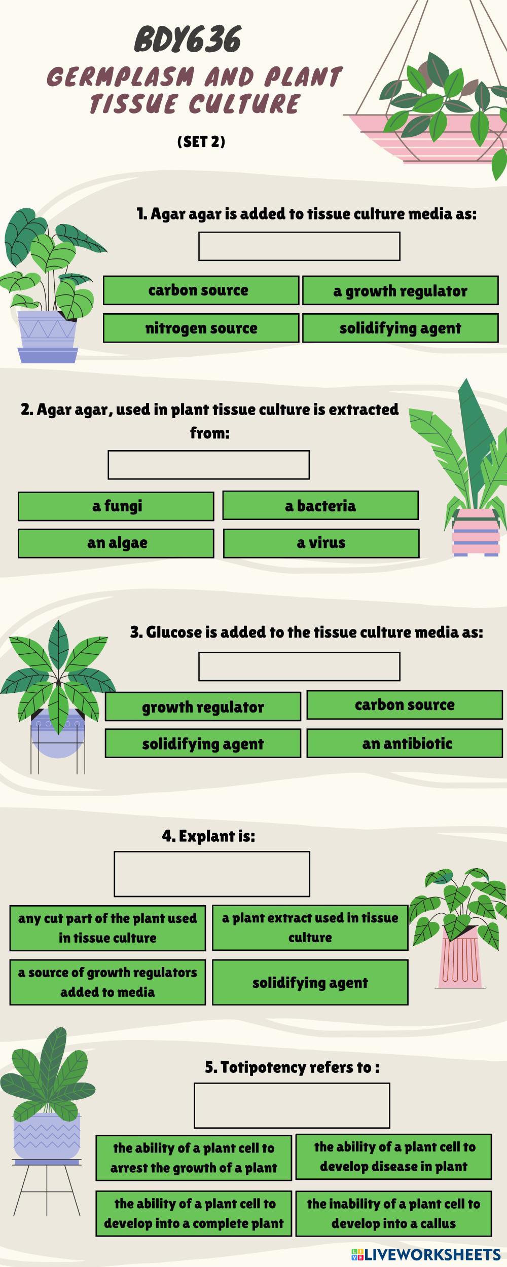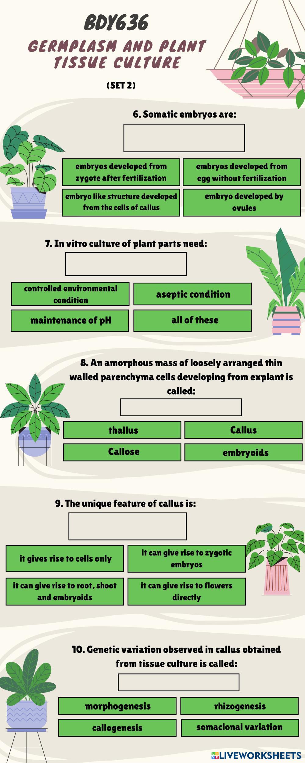GERMPLASM AND PLANT TISSUE CULTURE