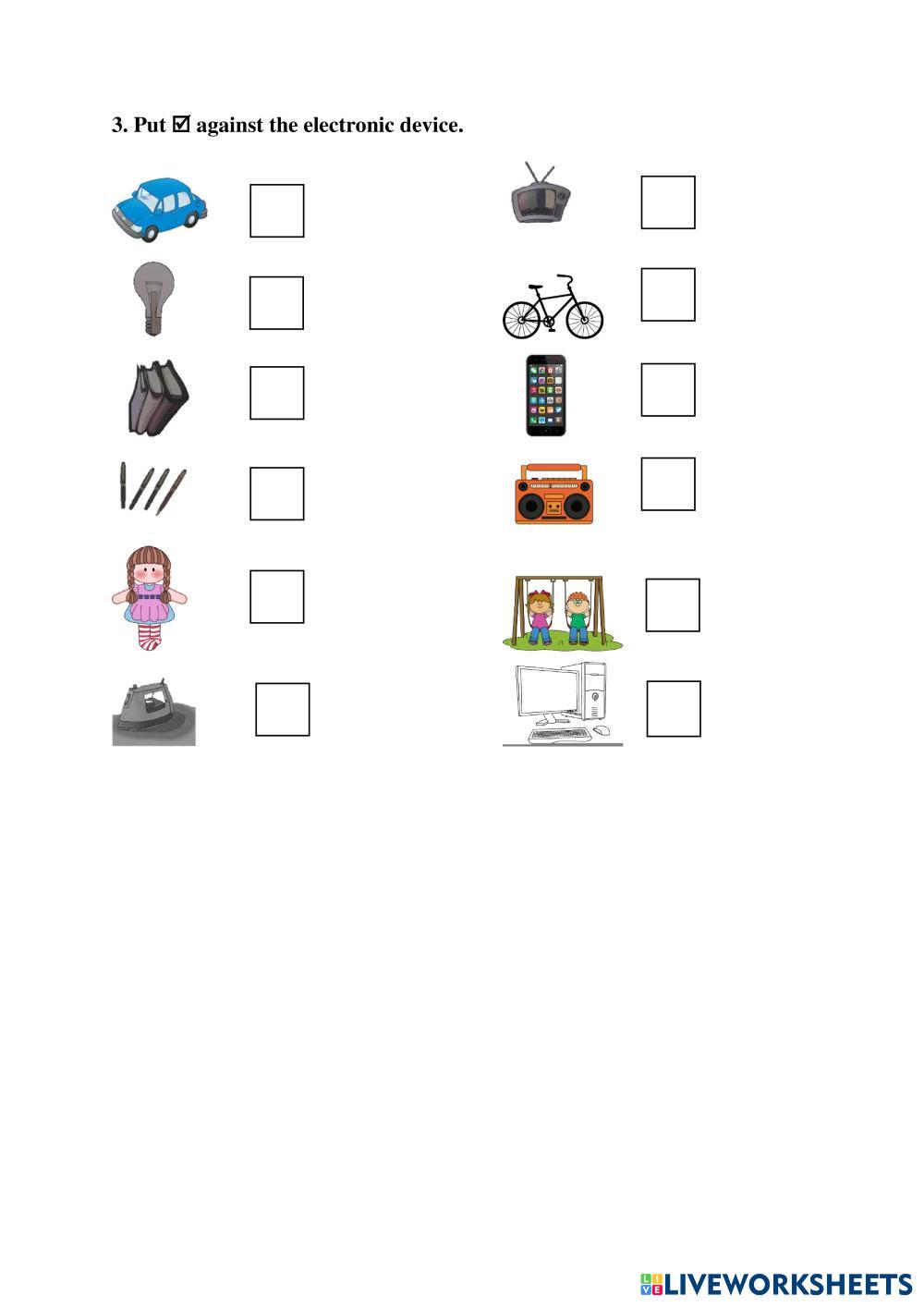Created by DhivyaP Computer Identify Electronic devices Age 6-10 level: Grade-1 English คำแนะนำของผู้เขียน My Google Classroom Courses × 0 classes selected (0 students total) Quick Access Select all classes (0 classes) All Classes Loading courses... ยกเลิก Share Share to selected Course __COURSE_NAME__ __STUDENT_NAME__ (__STUDENT_EMAIL__) Click only Electronic devices ดาวน์โหลด Worksheet Validation Check my answers Emails my answers to my teacher ชื่อเต็ม Group/level School subject Teacher's email or key code Close ส่งข้อมูล Validating worksheet... (12) Your answers have been sent to your teacher. Good luck! OK We encountered an error submitting your answers. Please try again. OK โฆษณา | ใช้งานแบบไม่มีโฆษณา Created by DhivyaP Computer Identify Electronic devices Age 6-10 level: Grade-1 English คำแนะนำของผู้เขียน