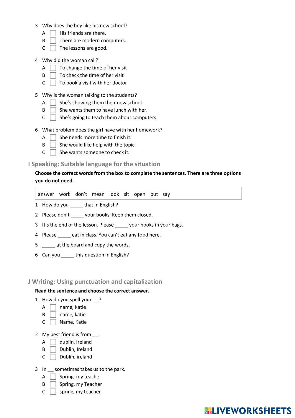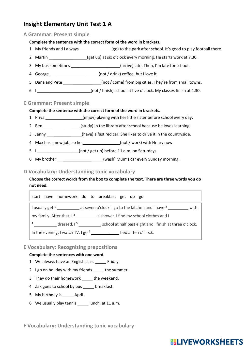 Created by Julijadpk ภาษาอังกฤษ ประถมศึกษา ป.5 (ประถมศึกษาปีที่ 5) ไวยากรณ์ English คำแนะนำของผู้เขียน Read the tasks and instructions carefully My Google Classroom Courses × 0 classes selected (0 students total) Quick Access Select all classes (0 classes) All Classes Loading courses... ยกเลิก Share Share to selected Course __COURSE_NAME__ __STUDENT_NAME__ (__STUDENT_EMAIL__) Insight element Unit 1 test ดาวน์โหลด Worksheet Validation Check my answers Emails my answers to my teacher ชื่อเต็ม Group/level School subject Teacher's email or key code Close ส่งข้อมูล Validating worksheet... (12) Your answers have been sent to your teacher. Good luck! OK We encountered an error submitting your answers. Please try again. OK โฆษณา | ใช้งานแบบไม่มีโฆษณา Created by Julijadpk ภาษาอังกฤษ ประถมศึกษา ป.5 (ประถมศึกษาปีที่ 5) ไวยากรณ์ English คำแนะนำของผู้เขียน Read the tasks and instructions carefully สำรวจแผ่นงาน English file elementary Test Unit 1 English Language 5th grade English file elementary Test Unit 1 Grammar - English Language Make sure you answer all questions Irregular verbs - Box 5 English Language 5th grade Irregular verbs - Box 5 Grammar - English Language Complete the boxes with the correct form of the irregular verbs Unit 10 - Help - Lesson 2.1 English Language 5th grade Unit 10 - Help - Lesson 2.1 Grammar - English Language Remember to submit your work U10 - L2.1 English Language 5th grade U10 - L2.1 Grammar - English Language Objective: To identify the grammatical rule and use it correctly.