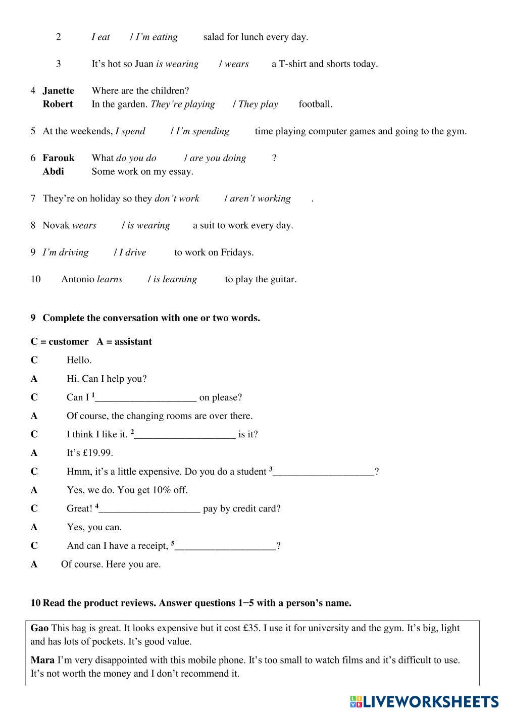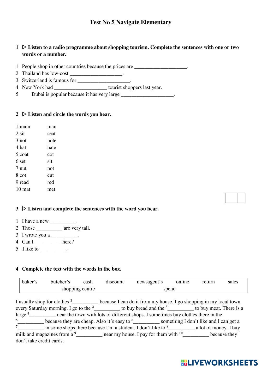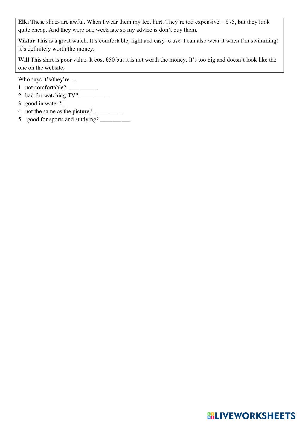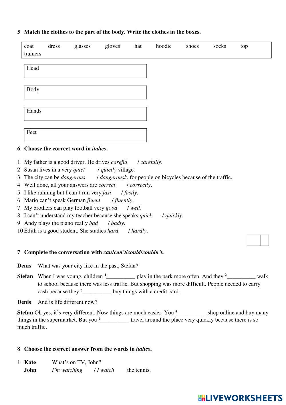 Created bySimona ภาษาอังกฤษ ประถมศึกษา ป.5 (ประถมศึกษาปีที่ 5) ไวยากรณ์ English คำแนะนำของผู้เขียน bn My Google Classroom Courses × 0 classes selected (0 students total) Quick Access Select all classes (0 classes) All Classes Loading courses... ยกเลิก Share Share to selected Course __COURSE_NAME__ __STUDENT_NAME__ (__STUDENT_EMAIL__) Navigate Elementary unit 5 ดาวน์โหลด Worksheet Validation Check my answers Emails my answers to my teacher ชื่อเต็ม Group/level School subject Teacher's email or key code Close ส่งข้อมูล Validating worksheet... (12) Your answers have been sent to your teacher. Good luck! OK We encountered an error submitting your answers. Please try again. OK โฆษณา | ใช้งานแบบไม่มีโฆษณา Created bySimona ภาษาอังกฤษ ประถมศึกษา ป.5 (ประถมศึกษาปีที่ 5) ไวยากรณ์ English คำแนะนำของผู้เขียน bn สำรวจแผ่นงาน Test unit 4a English Language 5th grade Test unit 4a Grammar - English Language Choose correct answers and fill in the gaps To be English Language 5th grade To be Grammar - English Language Complete the email with am, is or are. to be English Language 5th grade to be Grammar - English Language add am is are TO BE English Language 5th grade TO BE Grammar - English Language Fill in the blanks with am/ is/ are