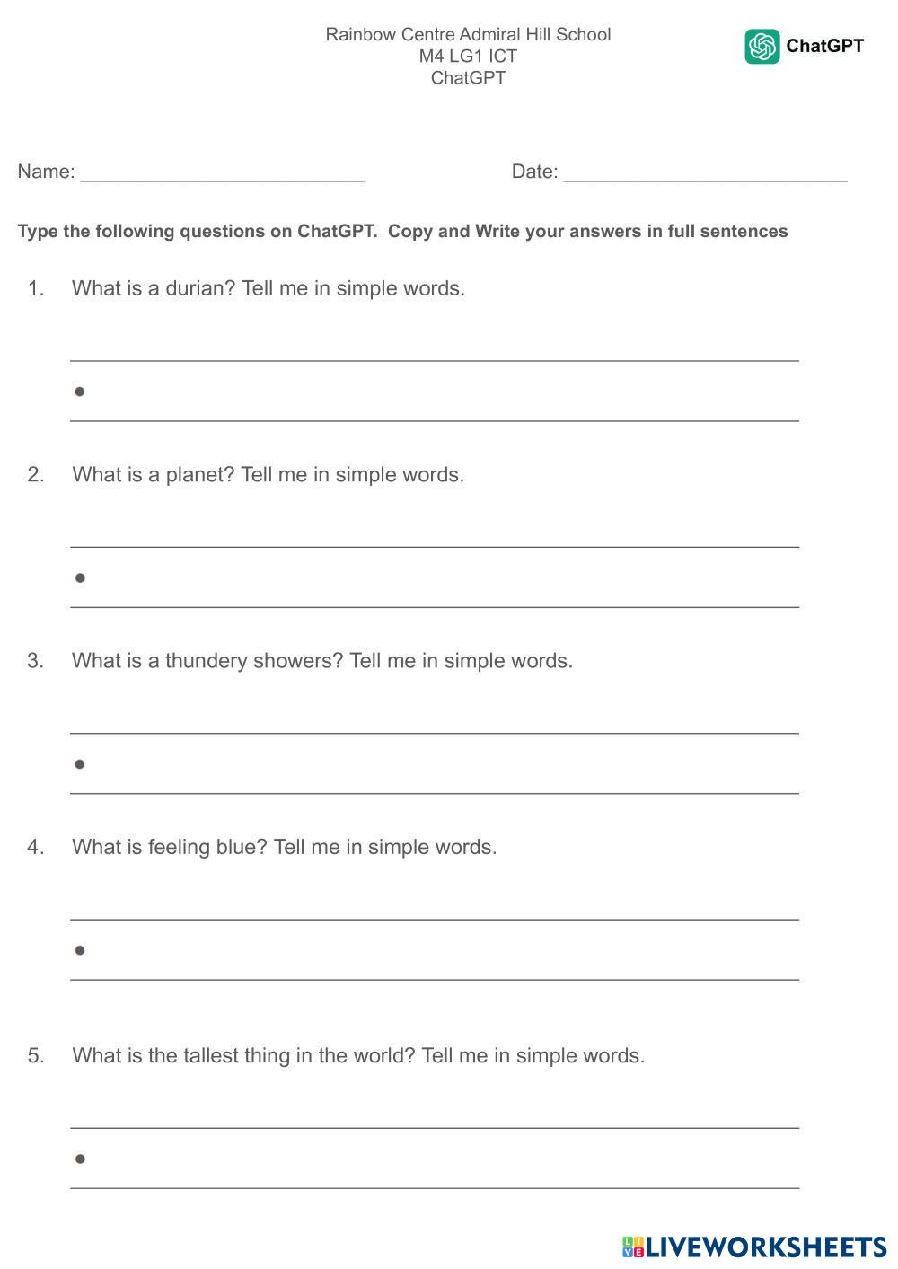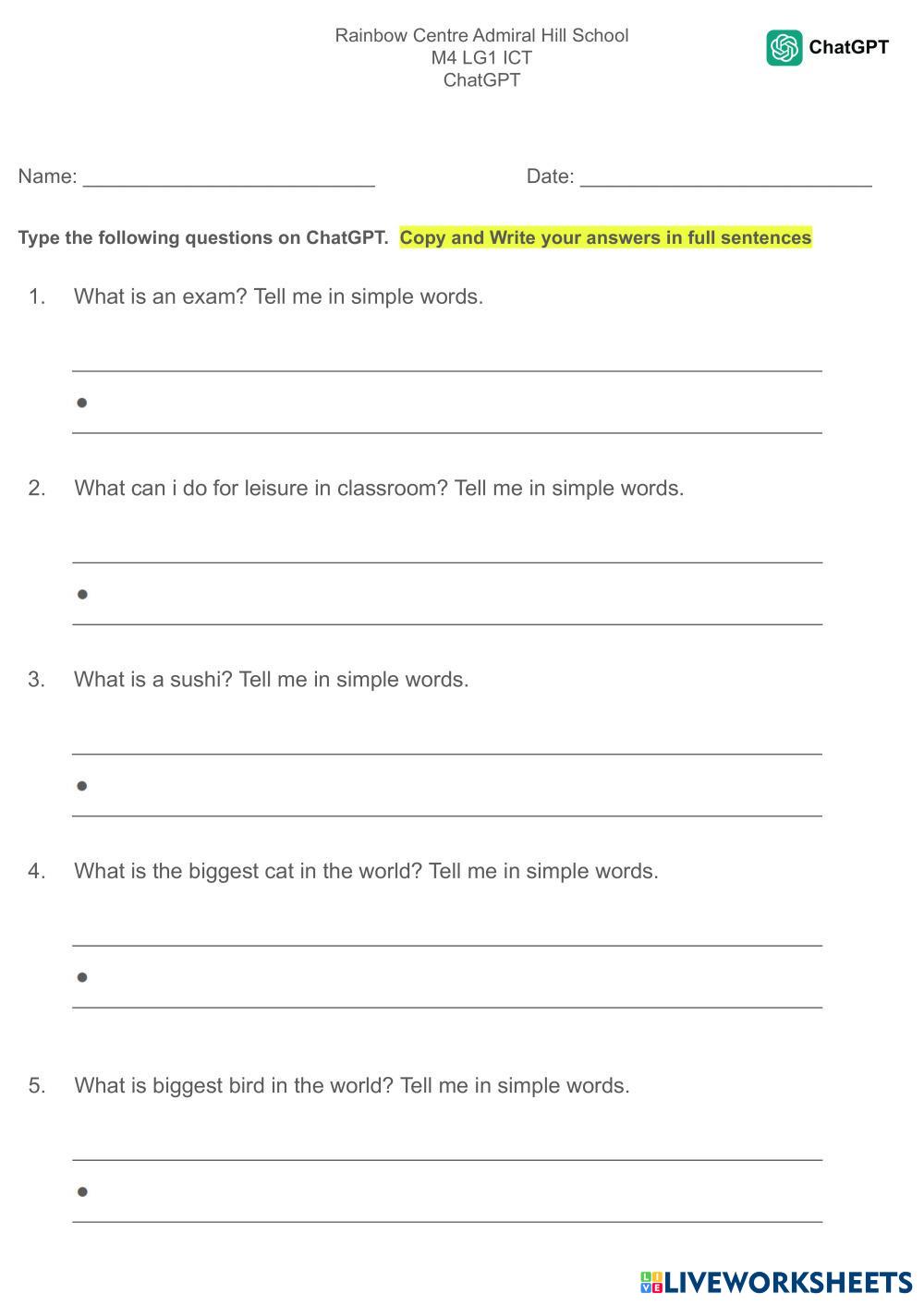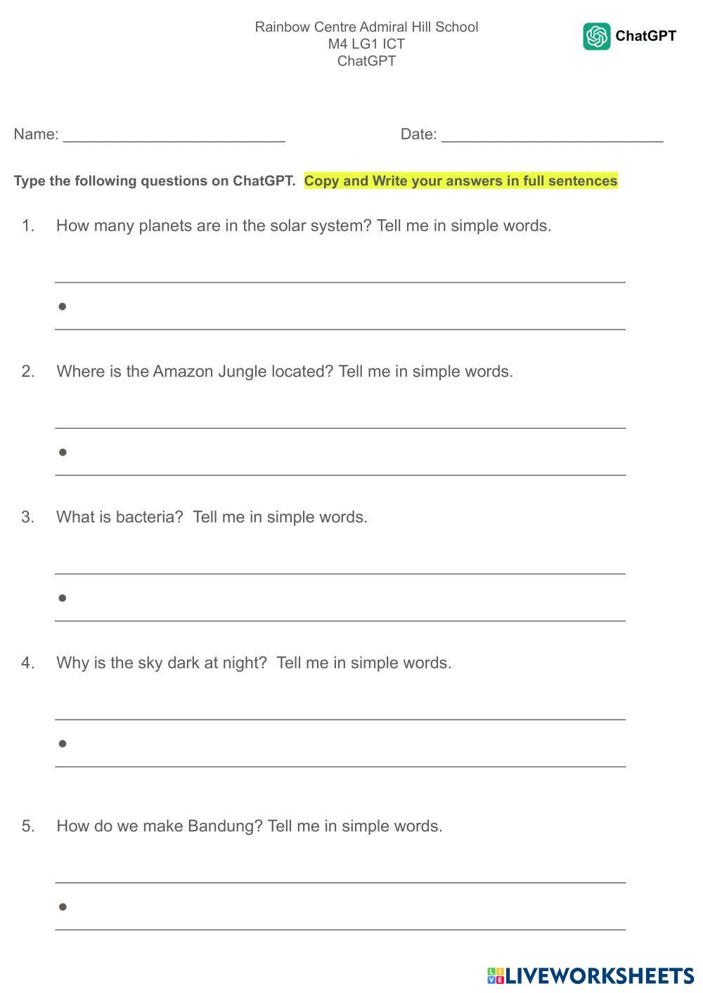Type the following questions on ChatGPT.