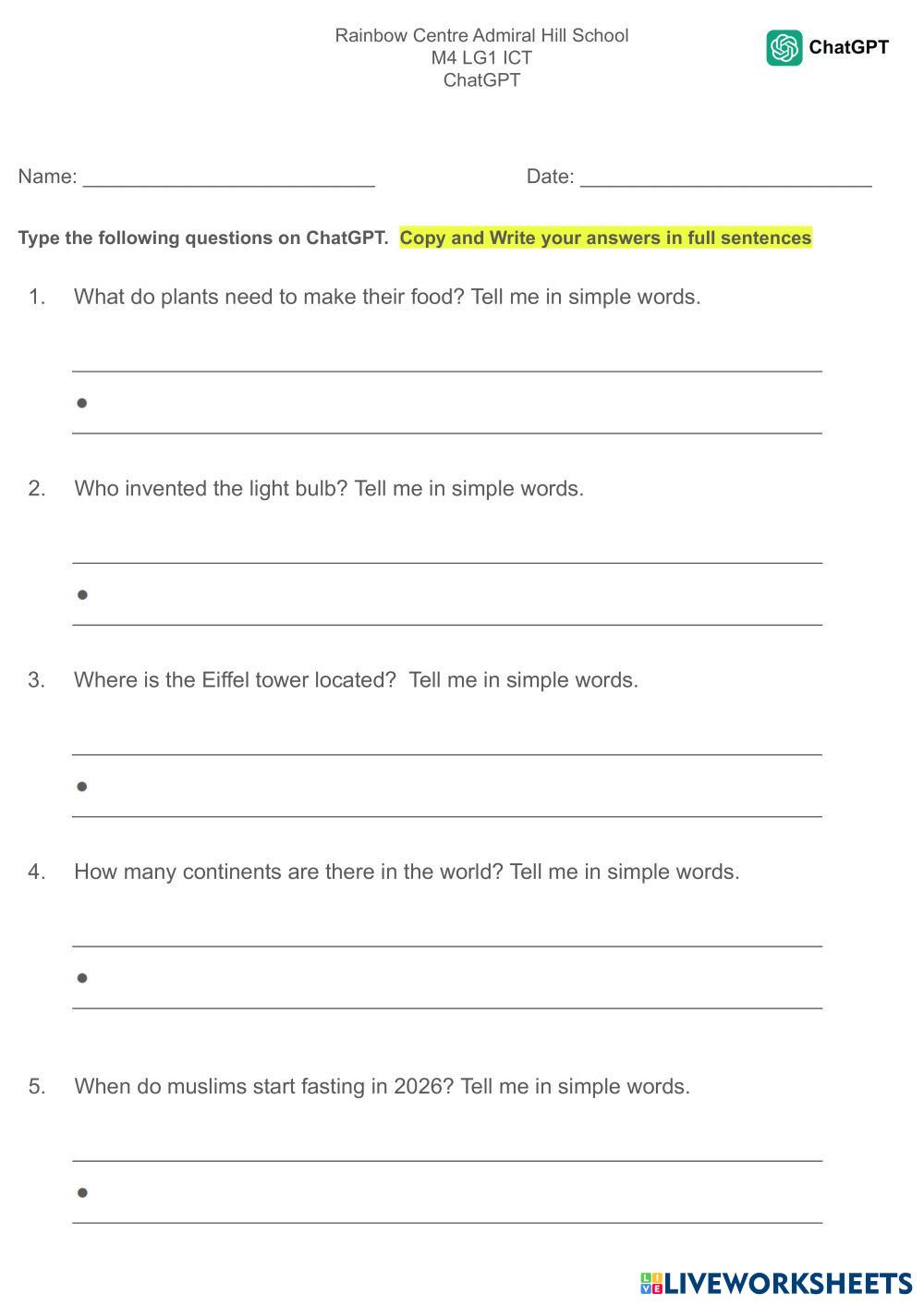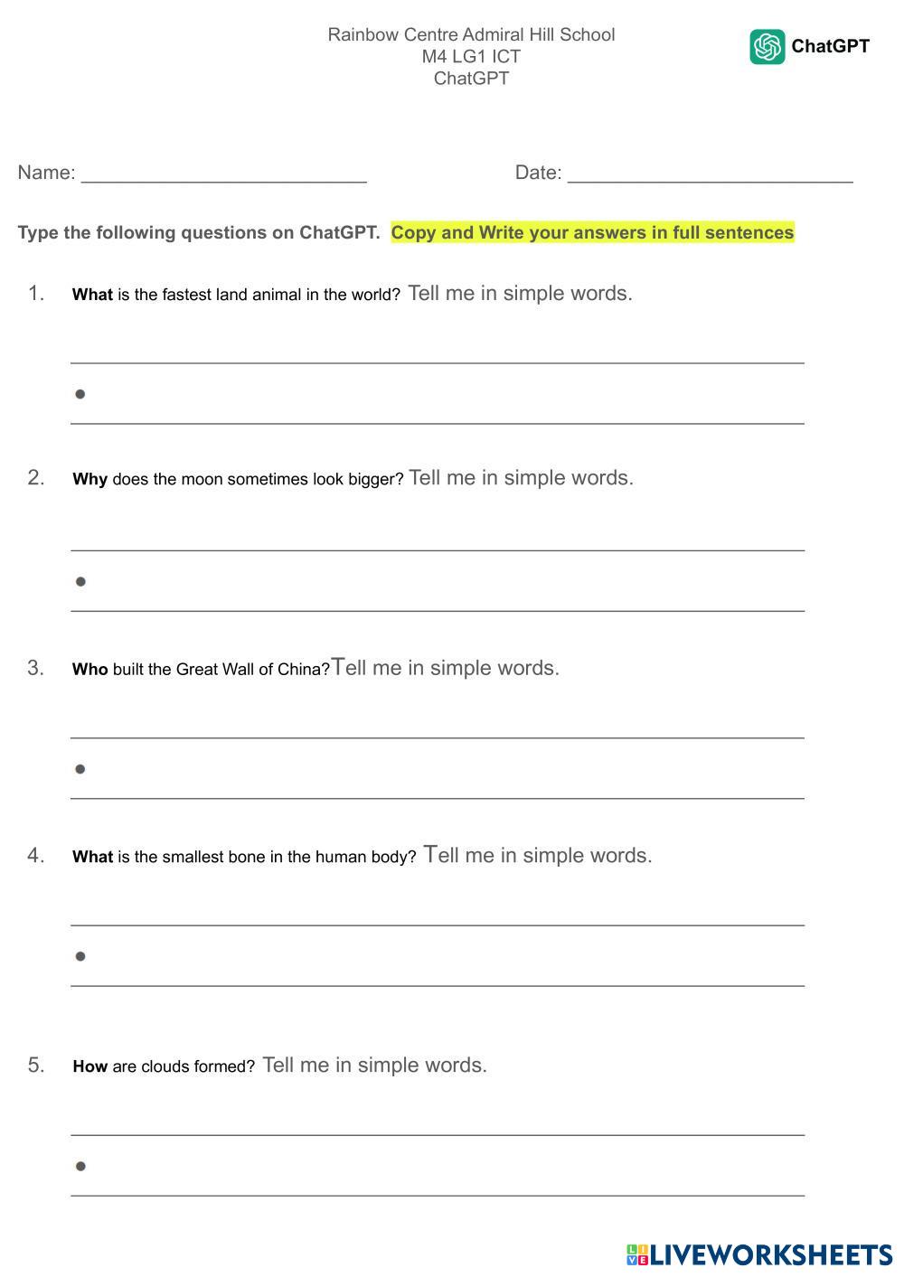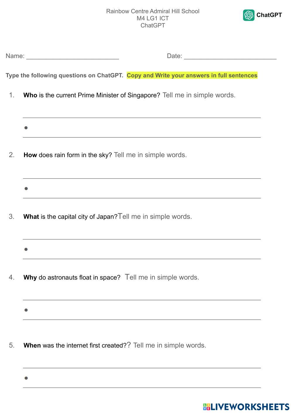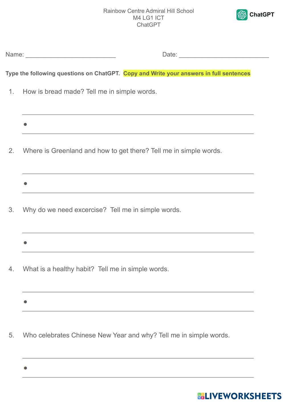 Type the following questions on ChatGPT.