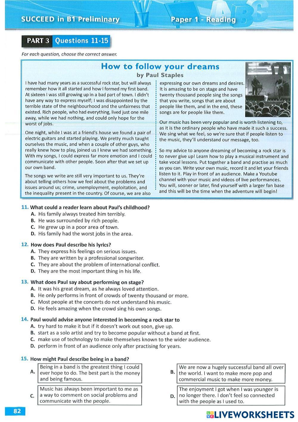 Created by bonguynchi ภาษาอังกฤษ มัธยมศึกษาตอนปลาย ม.6 (มัธยมศึกษาปีที่ 6) การเข้าใจการอ่าน English คำแนะนำของผู้เขียน hehehe My Google Classroom Courses × 0 classes selected (0 students total) Quick Access Select all classes (0 classes) All Classes Loading courses... ยกเลิก Share Share to selected Course __COURSE_NAME__ __STUDENT_NAME__ (__STUDENT_EMAIL__) reading test 5 ดาวน์โหลด Worksheet Validation Check my answers Emails my answers to my teacher ชื่อเต็ม Group/level School subject Teacher's email or key code Close ส่งข้อมูล Validating worksheet... (12) Your answers have been sent to your teacher. Good luck! OK We encountered an error submitting your answers. Please try again. OK โฆษณา | ใช้งานแบบไม่มีโฆษณา Created by bonguynchi ภาษาอังกฤษ มัธยมศึกษาตอนปลาย ม.6 (มัธยมศึกษาปีที่ 6) การเข้าใจการอ่าน English คำแนะนำของผู้เขียน hehehe สำรวจแผ่นงาน Life cost English Language 12th grade Life cost Reading Comprehension - English Language Read the text and write the letters of the sentences in the correct boxes. Life cost English Language 12th grade Life cost Reading Comprehension - English Language Read the text and write the letters of the sentences in the correct boxes. Reading & Use of English FCE Sample Test 2 English Language 12th grade Reading & Use of English FCE Sample Test 2 Reading Comprehension - English Language Follow the given instructions and answer. Dressing for Interviews English Language 12th grade Dressing for Interviews Reading Comprehension - English Language Read the text and choose the correct option.