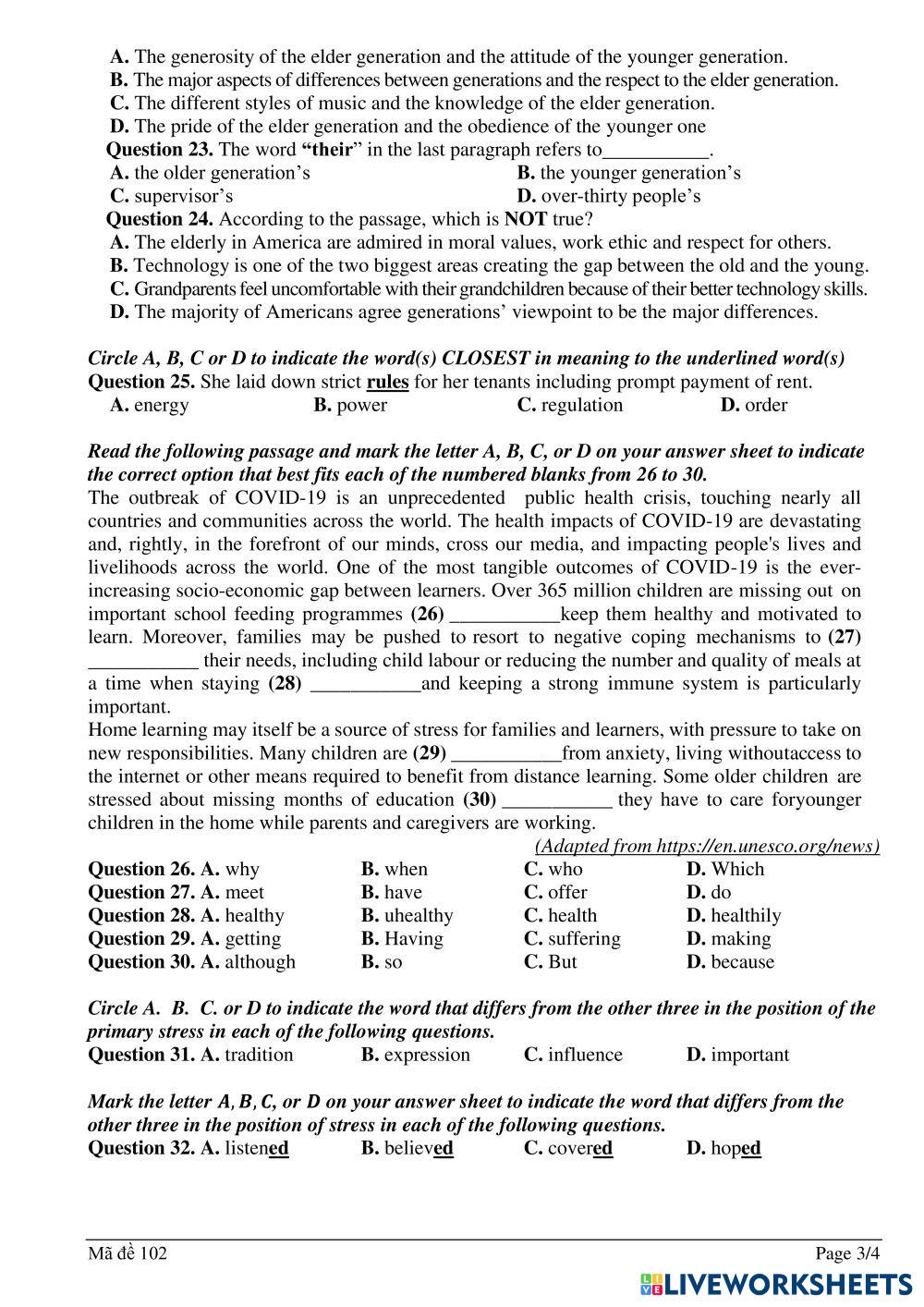 Each generation ___ (8) its own challenges, and ours is no exception. What worries many educators ___ (9) the way young people depend on technology for everything. Neither parents nor teachers ___ (10) exactly how this dependence will shape the future.