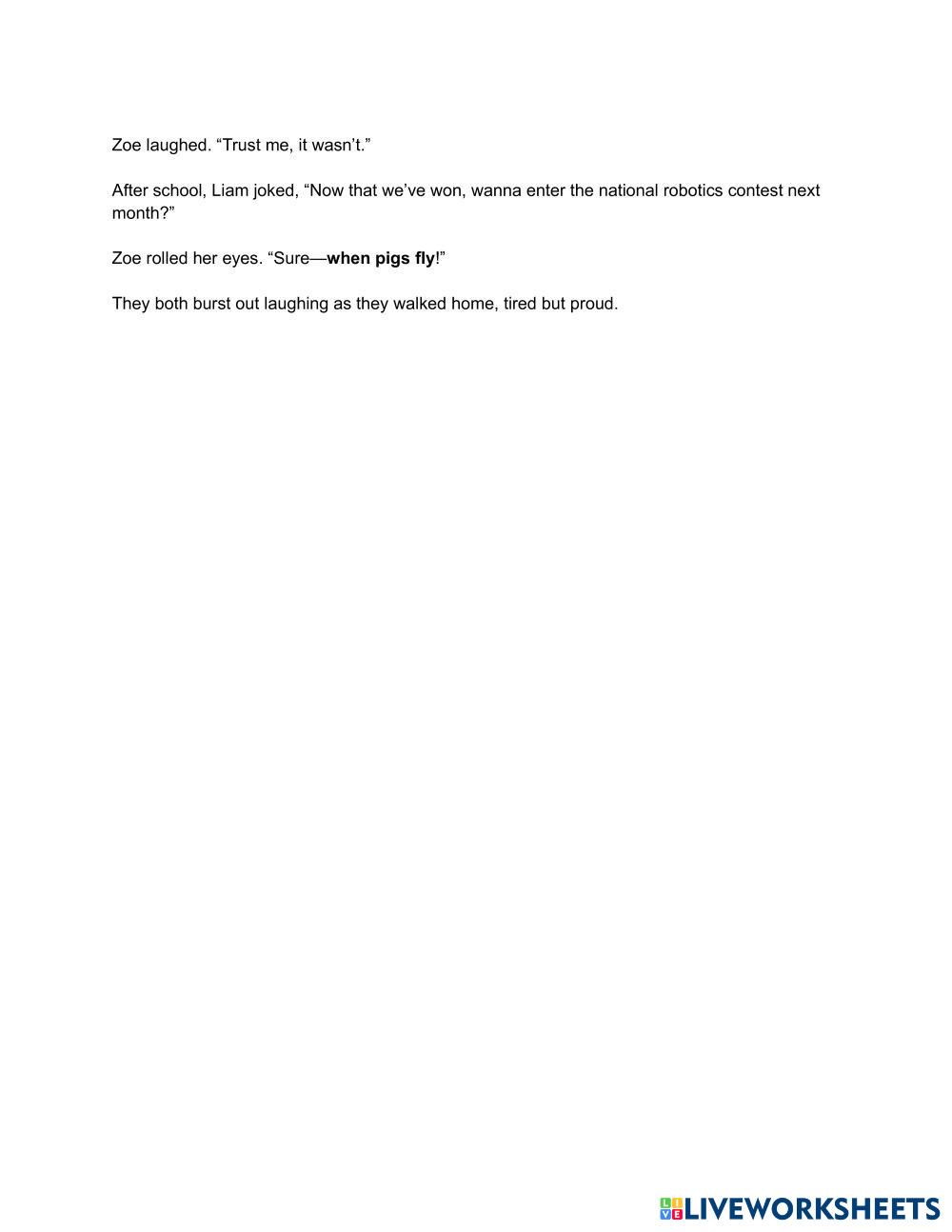 Change the idioms to their meaning in the following story.