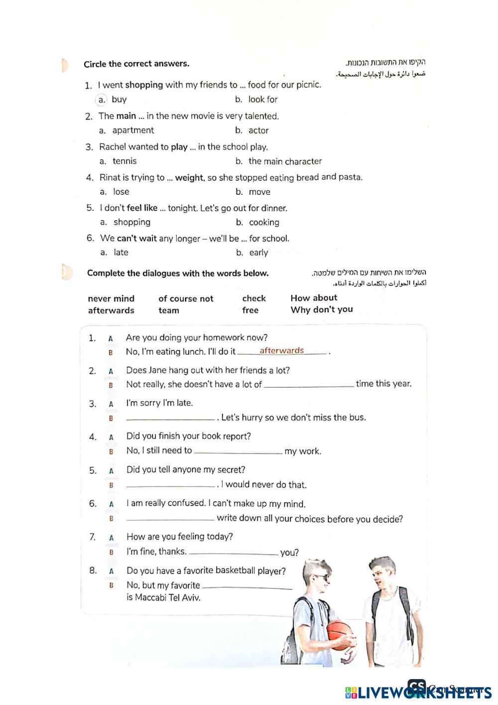 Created by hadarb ภาษาอังกฤษ มัธยมศึกษาตอนปลาย ม.4 (มัธยมศึกษาปีที่ 4) คำศัพท์ English คำแนะนำของผู้เขียน 1. Go over the words on Quizlet. 2. Practice the words by completing the worksheet. 1. עברו על המילים בקוויזלט. 2. תרגלו את המילים בדף העבודה כאן בעמוד. My Google Classroom Courses × 0 classes selected (0 students total) Quick Access Select all classes (0 classes) All Classes Loading courses... ยกเลิก Share Share to selected Course __COURSE_NAME__ __STUDENT_NAME__ (__STUDENT_EMAIL__) English in Context - p.39 Vocabulary Review ดาวน์โหลด Worksheet Validation Check my answers Emails my answers to my teacher ชื่อเต็ม Group/level School subject Teacher's email or key code Close ส่งข้อมูล Validating worksheet... (12) Your answers have been sent to your teacher. Good luck! OK We encountered an error submitting your answers. Please try again. OK โฆษณา | ใช้งานแบบไม่มีโฆษณา Created by hadarb ภาษาอังกฤษ มัธยมศึกษาตอนปลาย ม.4 (มัธยมศึกษาปีที่ 4) คำศัพท์ English คำแนะนำของผู้เขียน 1. Go over the words on Quizlet. 2. Practice the words by completing the worksheet. 1. עברו על המילים בקוויזלט. 2. תרגלו את המילים בדף העבודה כאן בעמוד. สำรวจแผ่นงาน FOCUS 1 Unit 1.3 Listening English Language 10th grade FOCUS 1 Unit 1.3 Listening Vocabulary - English Language Complete the exercises. Natural Disasters English Language 10th grade Natural Disasters Vocabulary - English Language Complete the task What is he/she wearing? English Language 10th grade What is he/she wearing? Vocabulary - English Language Listend and write LESSON 11.1 - SECRETS OF SUCCESS - EVOLVE 3 - LEVEL 12 English Language 10th grade LESSON 11.1 - SECRETS OF SUCCESS - EVOLVE 3 - LEVEL 12 Vocabulary - English Language Complethe the worksheet
