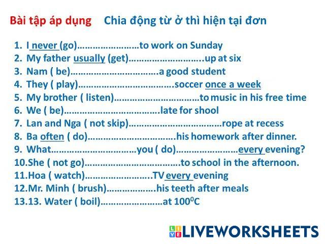 Created by thynguynthanh ภาษาอังกฤษ มัธยมศึกษาตอนปลาย ม.4 (มัธยมศึกษาปีที่ 4) คำศัพท์ English คำแนะนำของผู้เขียน Do exercise My Google Classroom Courses × 0 classes selected (0 students total) Quick Access Select all classes (0 classes) All Classes Loading courses... ยกเลิก Share Share to selected Course __COURSE_NAME__ __STUDENT_NAME__ (__STUDENT_EMAIL__) Practice Exercises - Conjugate the verbs in the Present Simple tense. ดาวน์โหลด Worksheet Validation Check my answers Emails my answers to my teacher ชื่อเต็ม Group/level School subject Teacher's email or key code Close ส่งข้อมูล Validating worksheet... (12) Your answers have been sent to your teacher. Good luck! OK We encountered an error submitting your answers. Please try again. OK โฆษณา | ใช้งานแบบไม่มีโฆษณา Created by thynguynthanh ภาษาอังกฤษ มัธยมศึกษาตอนปลาย ม.4 (มัธยมศึกษาปีที่ 4) คำศัพท์ English คำแนะนำของผู้เขียน Do exercise สำรวจแผ่นงาน exercise 2 English Language 10th grade exercise 2 Vocabulary - English Language fill in the blank Matching vocabulary English Language 10th grade Matching vocabulary Vocabulary - English Language Matching vocabulary based on context UNIT 1: GRAMMAR_PRESENT SIMPLE TENSE English Language 10th grade UNIT 1: GRAMMAR_PRESENT SIMPLE TENSE Vocabulary - English Language Complete the following sentences using the forms of present simple tense of verbs. UNIT 1: GRAMMAR English Language 10th grade UNIT 1: GRAMMAR Vocabulary - English Language Complete the following sentences using the forms of present simple tense of verbs.