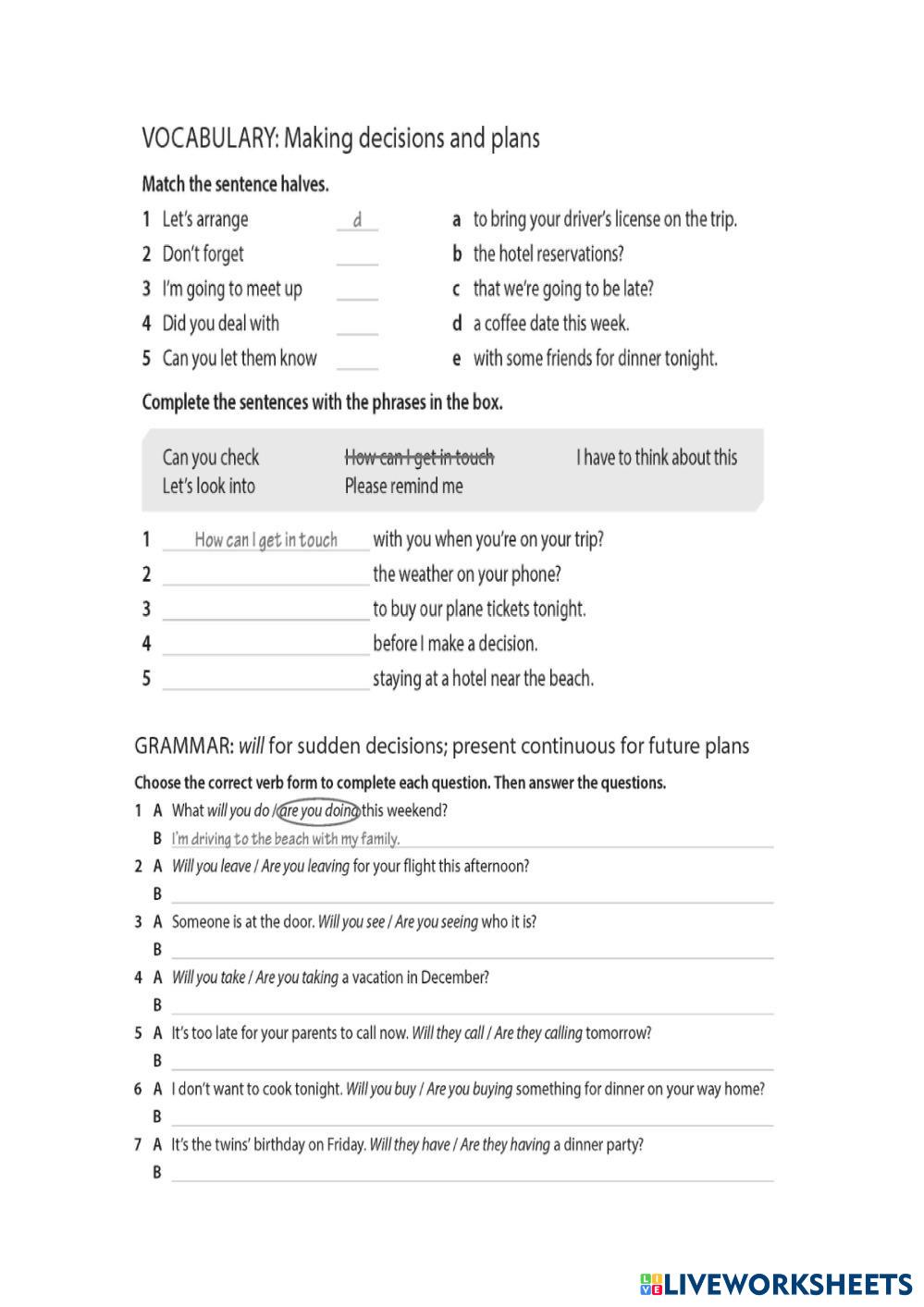 Students will complete vocabulary and grammar activities.