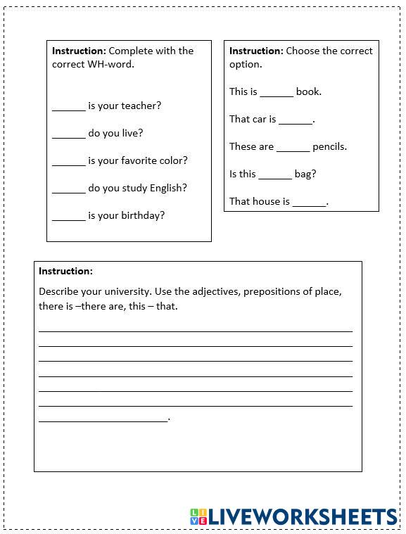 Complete all the quiz, according to the topics worked in level A1.