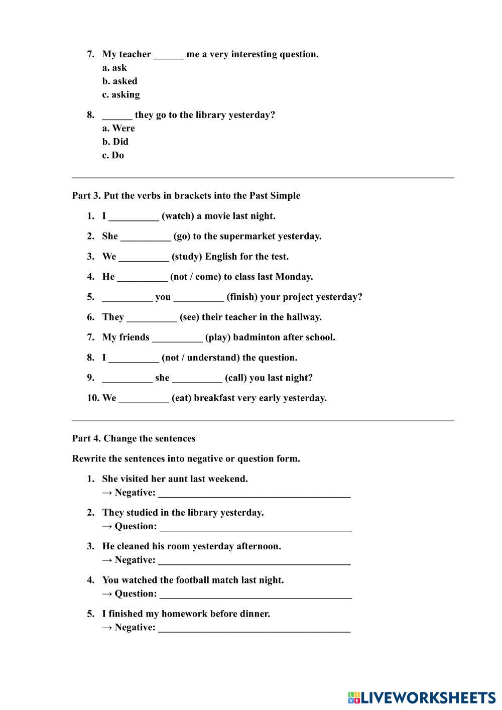 Part 3. Put the verbs in brackets into the Past Simple