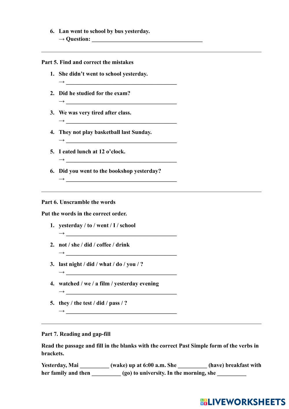 6. Did you went to the bookshop yesterday?