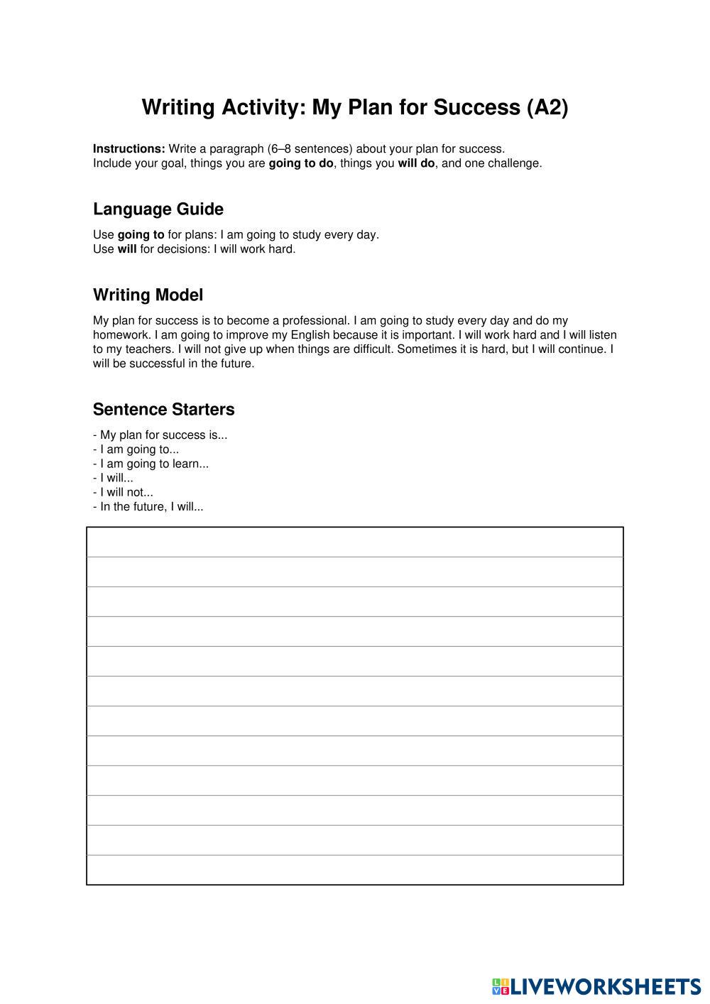 Write a paragraph (6–8 sentences) about your plan for success.