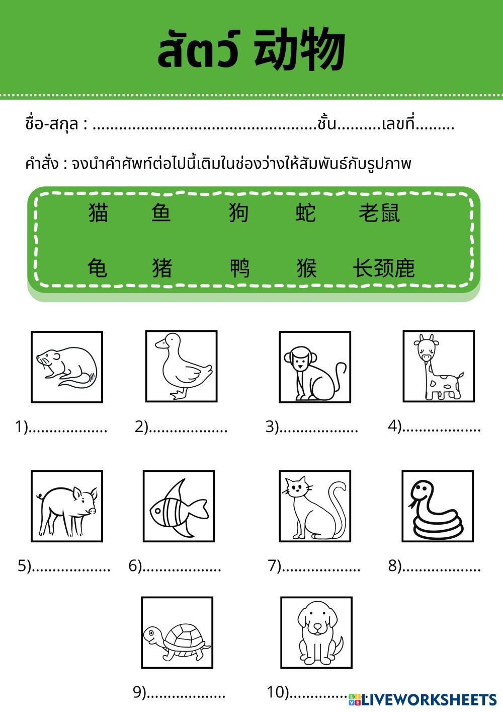 Created byปัทมพร ทิมพิทักษ์ Chinese Other Age 3+ level: 1 Thai Author's Instructions - My Google Classroom Courses × 0 classes selected (0 students total) Quick Access Select all classes (0 classes) All Classes Loading courses... ยกเลิก Share Share to selected Course __COURSE_NAME__ __STUDENT_NAME__ (__STUDENT_EMAIL__) แบบฝึกหัดเกี่ยวกับสัตว์ ดาวน์โหลด Worksheet Validation Check my answers Emails my answers to my teacher ชื่อเต็ม Group/level School subject Teacher's email or key code Close ส่งข้อมูล Validating worksheet... (12) Your answers have been sent to your teacher. Good luck! OK We encountered an error submitting your answers. Please try again. OK โฆษณา | ใช้งานแบบไม่มีโฆษณา Created byปัทมพร ทิมพิทักษ์ Chinese Other Age 3+ level: 1 Thai Author's Instructions -