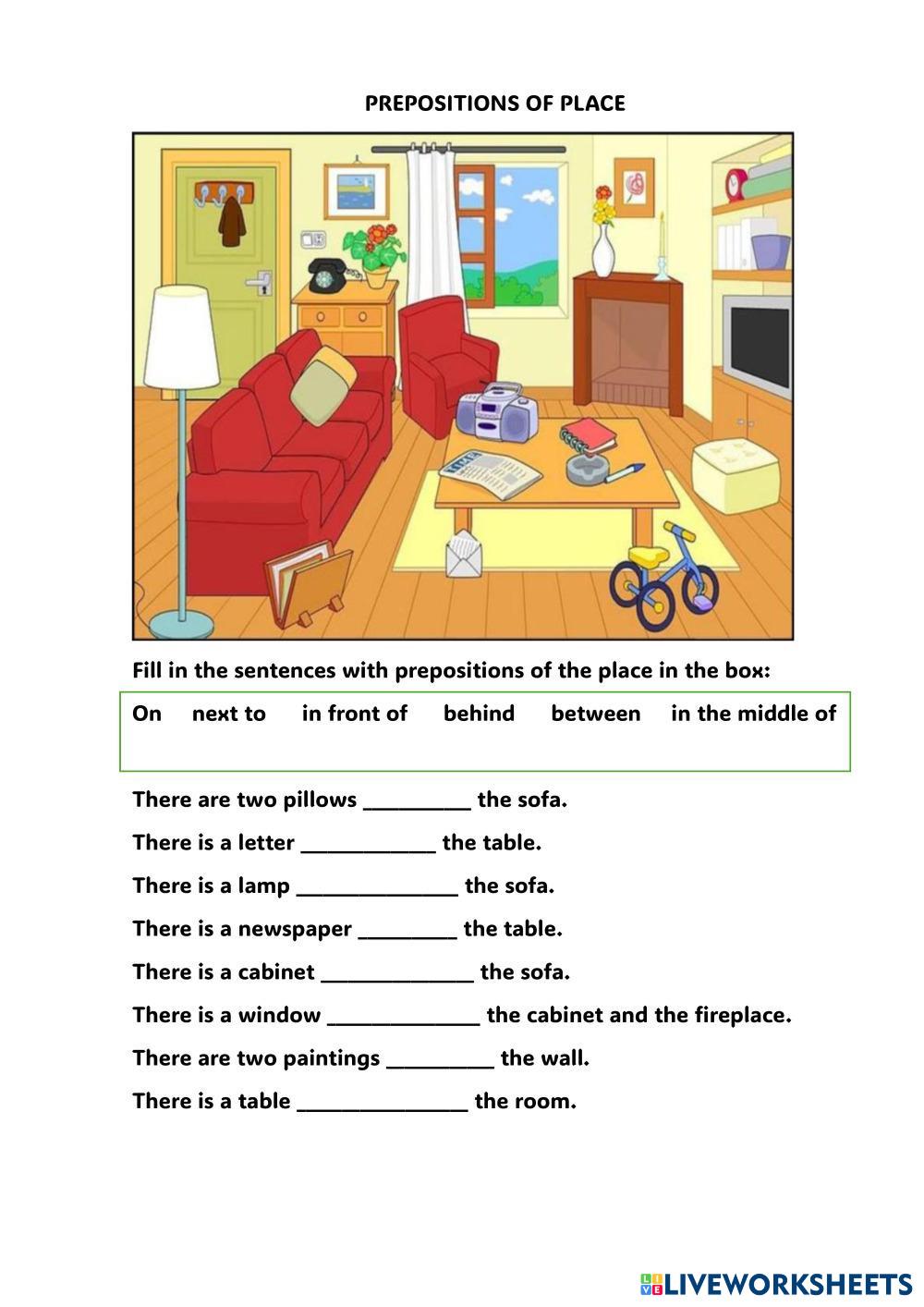 This task is aimed at training prepositions of a place