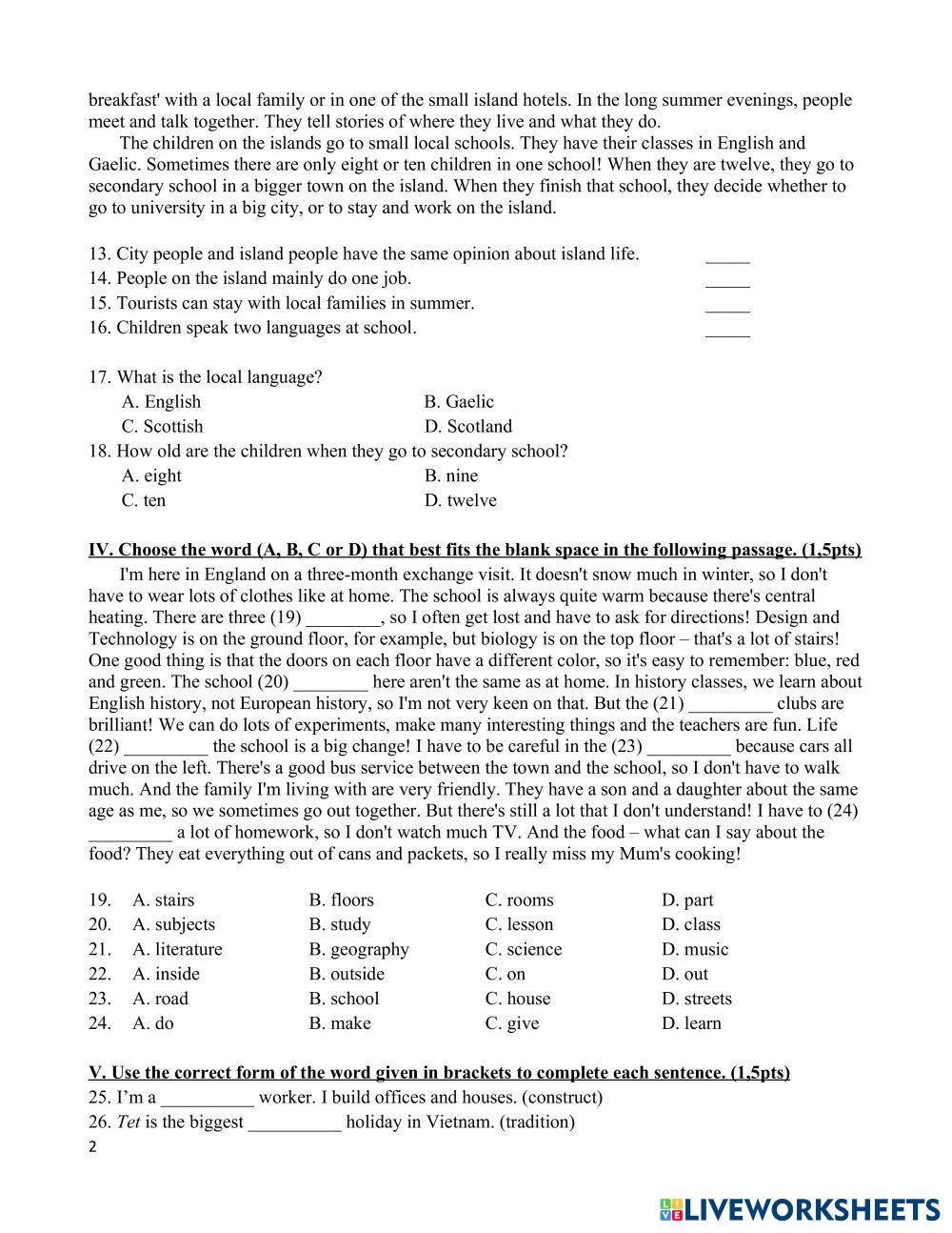 Created byTA Day Kem - A2 English language English Age 12-18 level: 6-8 English คำแนะนำของผู้เขียน My Google Classroom Courses × 0 classes selected (0 students total) Quick Access Select all classes (0 classes) All Classes Loading courses... ยกเลิก Share Share to selected Course __COURSE_NAME__ __STUDENT_NAME__ (__STUDENT_EMAIL__) SW6_45p_1_HK1 ดาวน์โหลด Worksheet Validation Check my answers Emails my answers to my teacher ชื่อเต็ม Group/level School subject Teacher's email or key code Close ส่งข้อมูล Validating worksheet... (12) Your answers have been sent to your teacher. Good luck! OK We encountered an error submitting your answers. Please try again. OK โฆษณา | ใช้งานแบบไม่มีโฆษณา Created byTA Day Kem - A2 English language English Age 12-18 level: 6-8 English คำแนะนำของผู้เขียน