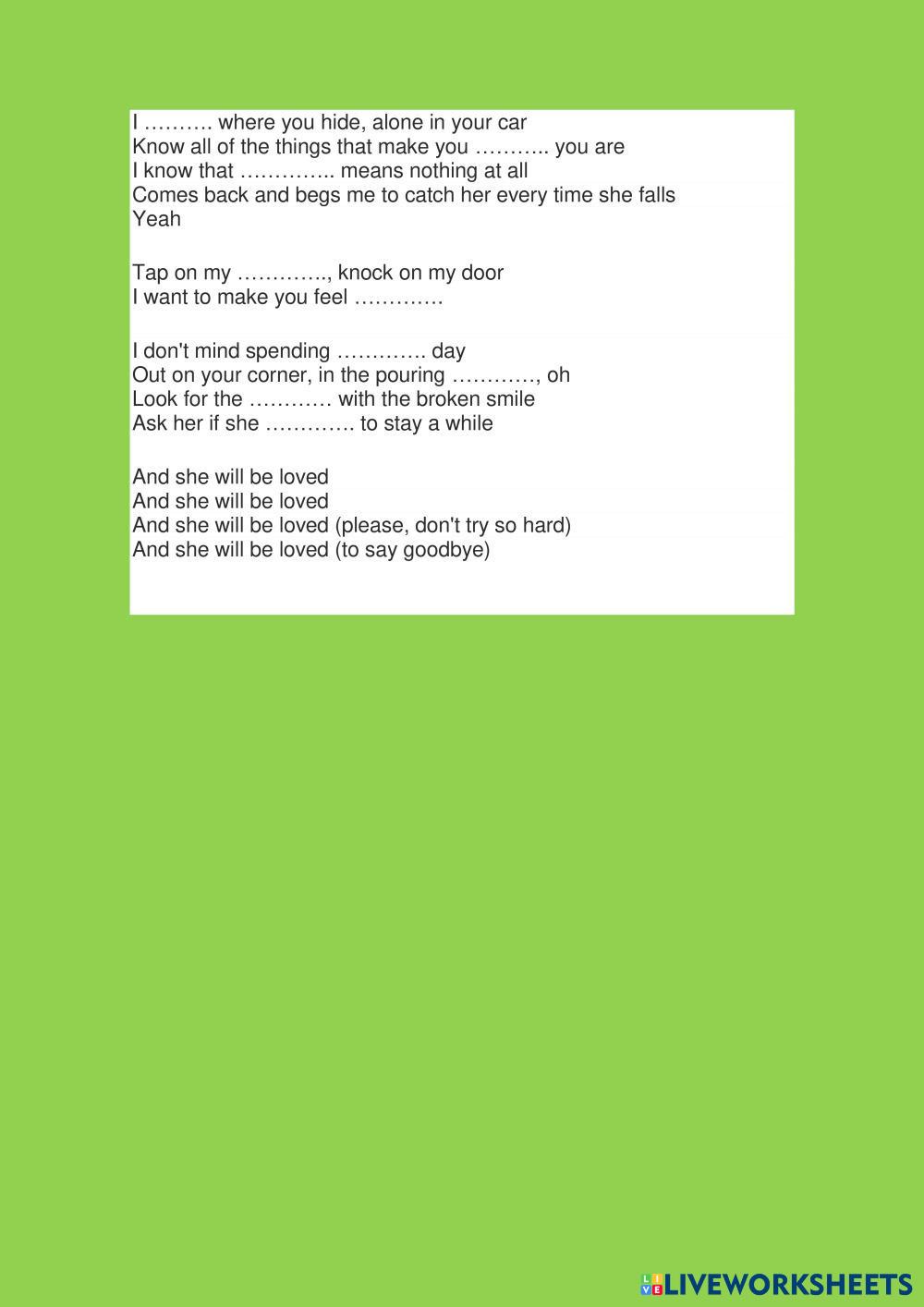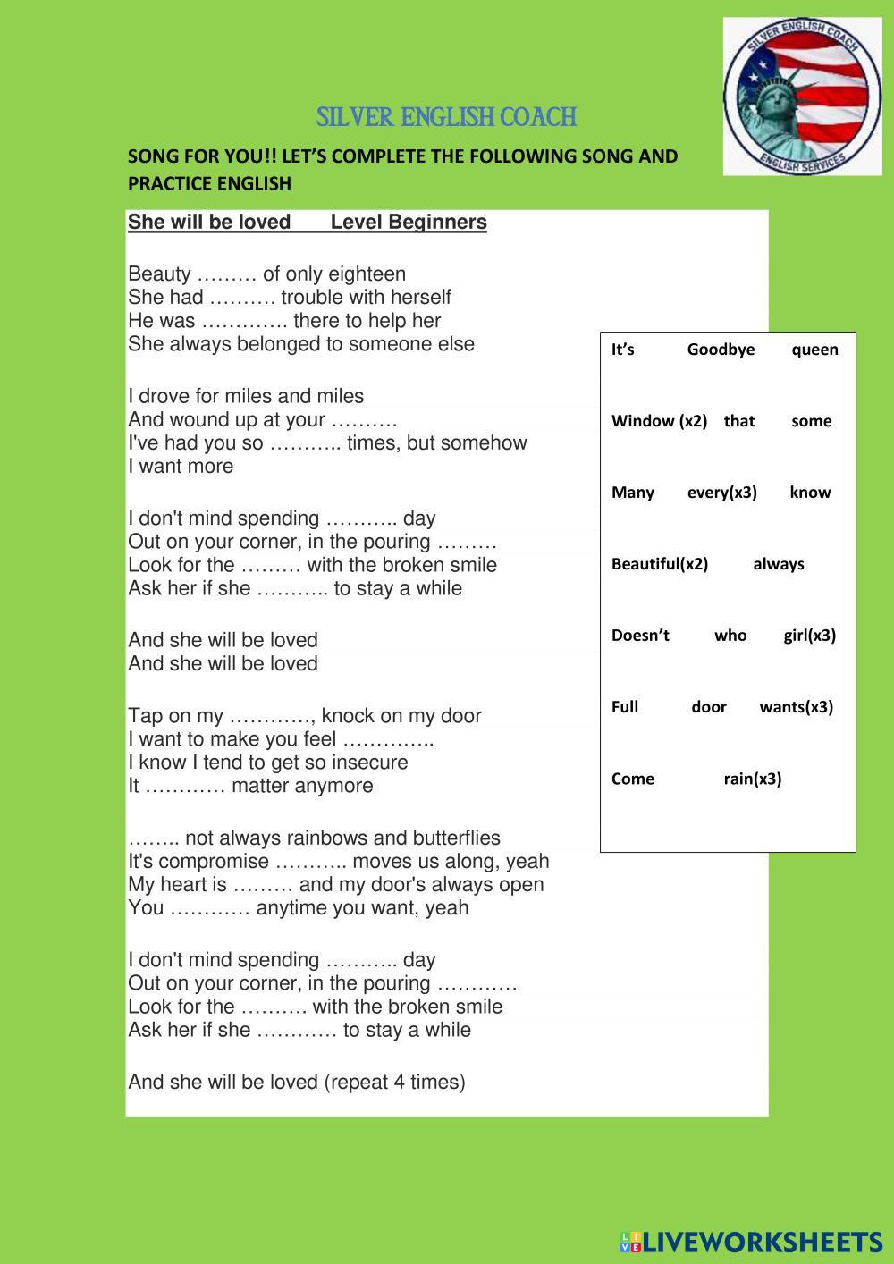 Complete the following song. Remember to listen it three times at least.