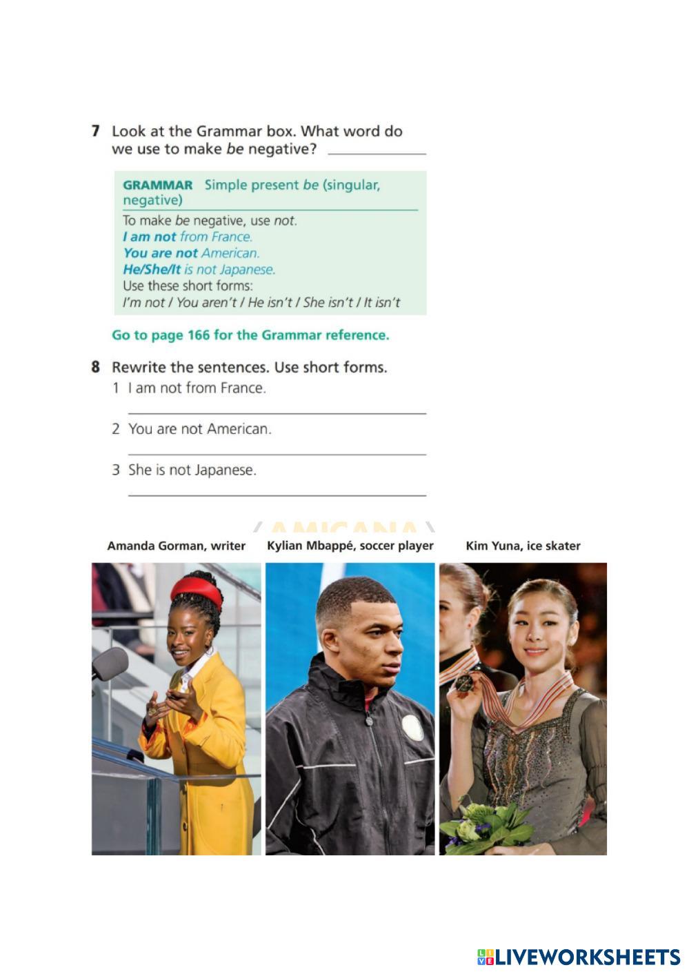Created byLAURA NAVARRETE English as a Second Language (ESL) Nationalities and verb to be Age 18+ level: A2 + English คำแนะนำของผู้เขียน My Google Classroom Courses × 0 classes selected (0 students total) Quick Access Select all classes (0 classes) All Classes Loading courses... ยกเลิก Share Share to selected Course __COURSE_NAME__ __STUDENT_NAME__ (__STUDENT_EMAIL__) MY NATIONALYTY ดาวน์โหลด Worksheet Validation Check my answers Emails my answers to my teacher ชื่อเต็ม Group/level School subject Teacher's email or key code Close ส่งข้อมูล Validating worksheet... (12) Your answers have been sent to your teacher. Good luck! OK We encountered an error submitting your answers. Please try again. OK โฆษณา | ใช้งานแบบไม่มีโฆษณา Created byLAURA NAVARRETE English as a Second Language (ESL) Nationalities and verb to be Age 18+ level: A2 + English คำแนะนำของผู้เขียน