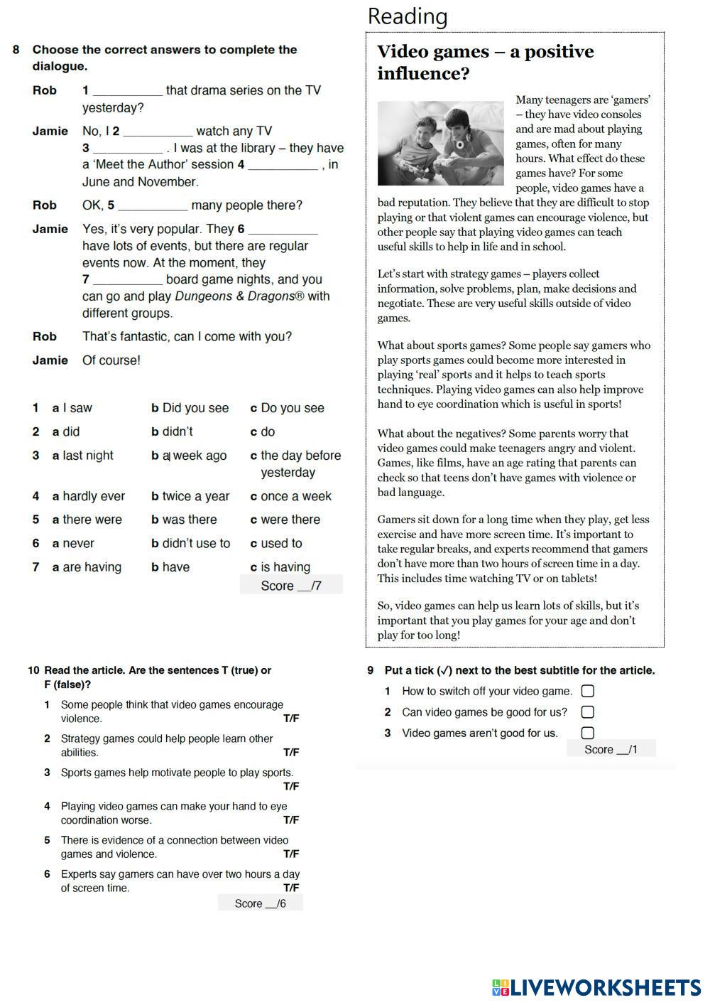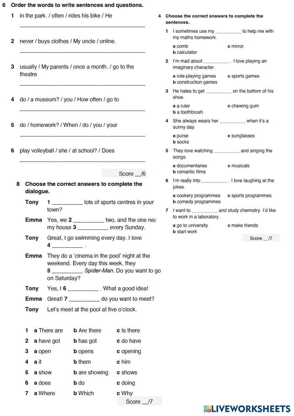 Created byAnastasiia Hrinchenko English as a Second Language (ESL) Tests and exams Age 15+ level: A2+ English คำแนะนำของผู้เขียน My Google Classroom Courses × 0 classes selected (0 students total) Quick Access Select all classes (0 classes) All Classes Loading courses... ยกเลิก Share Share to selected Course __COURSE_NAME__ __STUDENT_NAME__ (__STUDENT_EMAIL__) GI A2+ Module 1 Test ดาวน์โหลด Worksheet Validation Check my answers Emails my answers to my teacher ชื่อเต็ม Group/level School subject Teacher's email or key code Close ส่งข้อมูล Validating worksheet... (12) Your answers have been sent to your teacher. Good luck! OK We encountered an error submitting your answers. Please try again. OK โฆษณา | ใช้งานแบบไม่มีโฆษณา Created byAnastasiia Hrinchenko English as a Second Language (ESL) Tests and exams Age 15+ level: A2+ English คำแนะนำของผู้เขียน