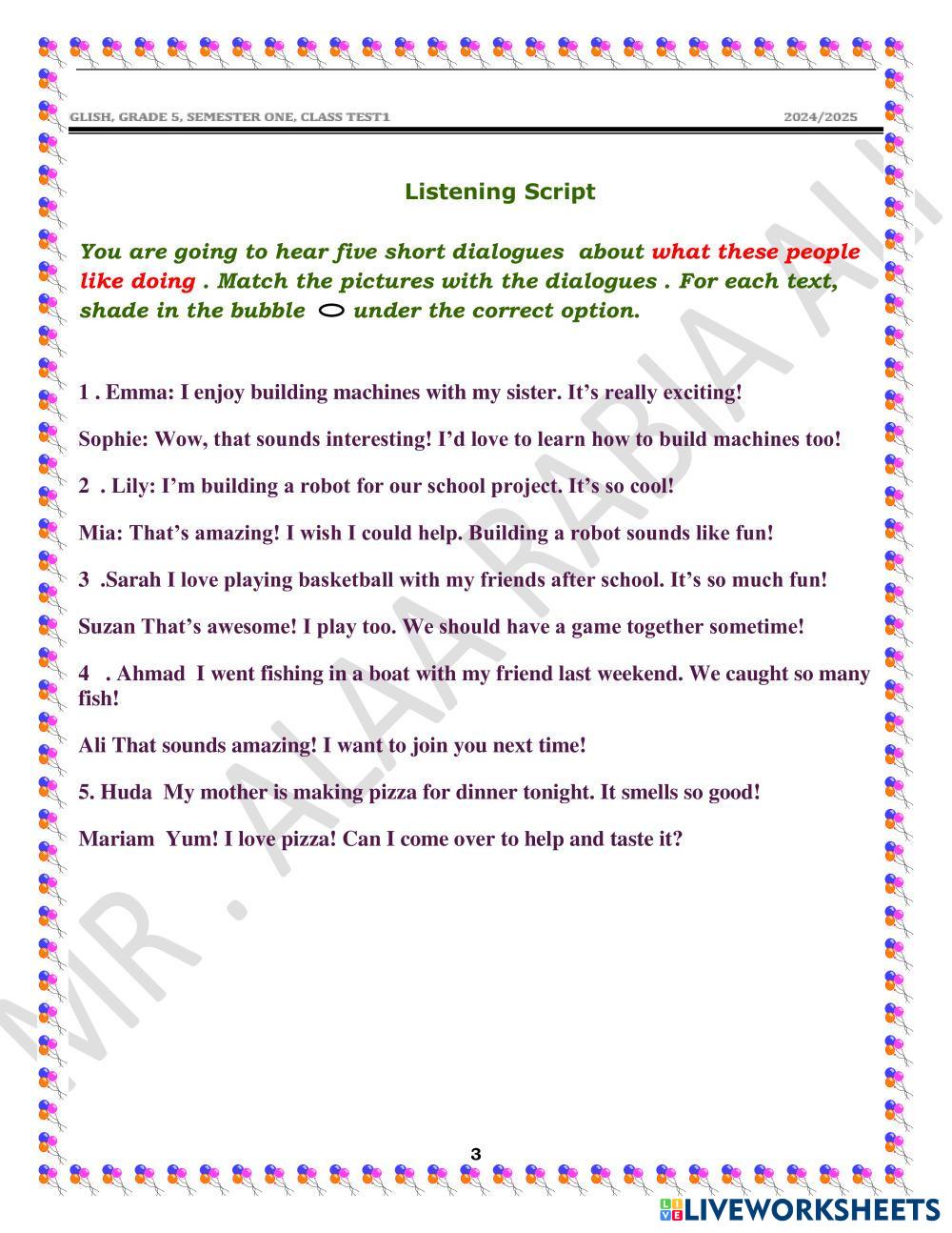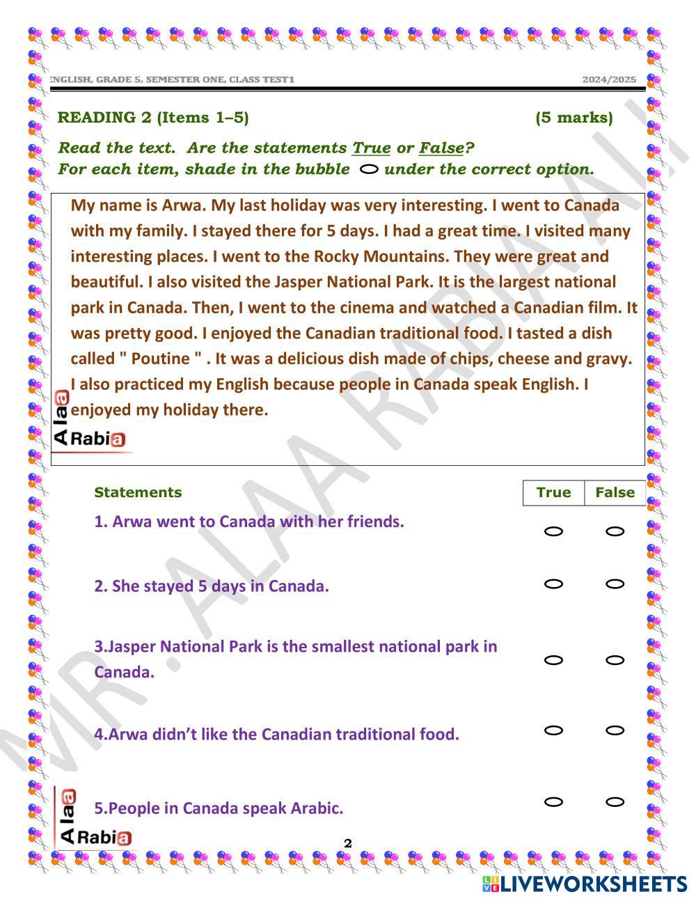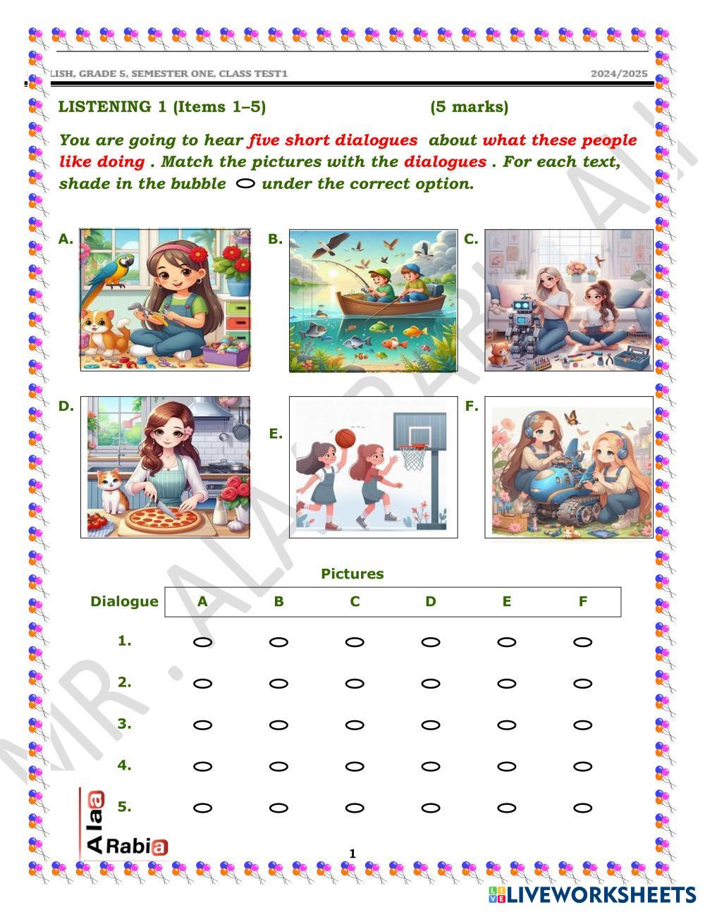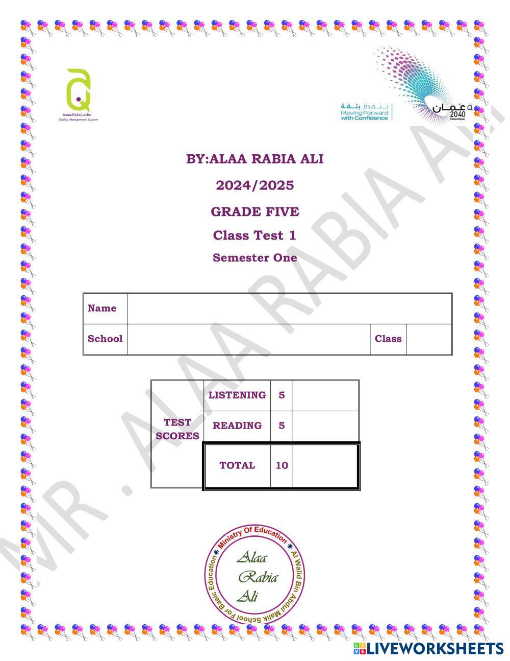 Grade 5A S 1 Class Test 1 ( 2024 / 2025 )