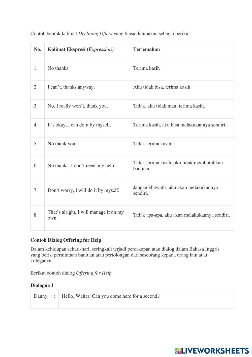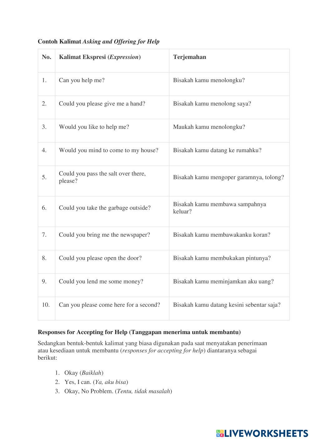 Using the expressions of asking and offering help.