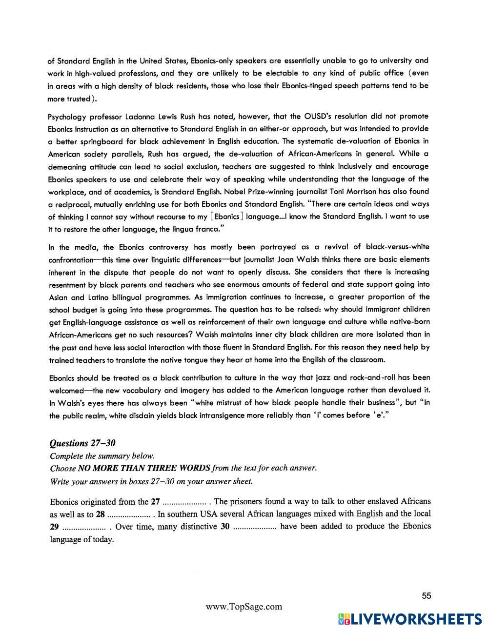 Created byNguyễn Thuý Liên ESL C1 (ขั้นสูง) ไวยากรณ์ English คำแนะนำของผู้เขียน . My Google Classroom Courses × 0 classes selected (0 students total) Quick Access Select all classes (0 classes) All Classes Loading courses... ยกเลิก Share Share to selected Course __COURSE_NAME__ __STUDENT_NAME__ (__STUDENT_EMAIL__) IELTS_SIMULATION_READING_4 ดาวน์โหลด Worksheet Validation Check my answers Emails my answers to my teacher ชื่อเต็ม Group/level School subject Teacher's email or key code Close ส่งข้อมูล Validating worksheet... (12) Your answers have been sent to your teacher. Good luck! OK We encountered an error submitting your answers. Please try again. OK โฆษณา | ใช้งานแบบไม่มีโฆษณา Created byNguyễn Thuý Liên ESL C1 (ขั้นสูง) ไวยากรณ์ English คำแนะนำของผู้เขียน . สำรวจแผ่นงาน HSG9-2526 ESL C1 HSG9-2526 Grammar - ESL . IELTS PROSPERITY - READING 7 ESL C1 IELTS PROSPERITY - READING 7 Grammar - ESL . IELTS_SIMULATION_LISTENING_1 ESL C1 IELTS_SIMULATION_LISTENING_1 Grammar - ESL .. IELTS_SIMULATION_LISTENING_2 ESL C1 IELTS_SIMULATION_LISTENING_2 Grammar - ESL .
